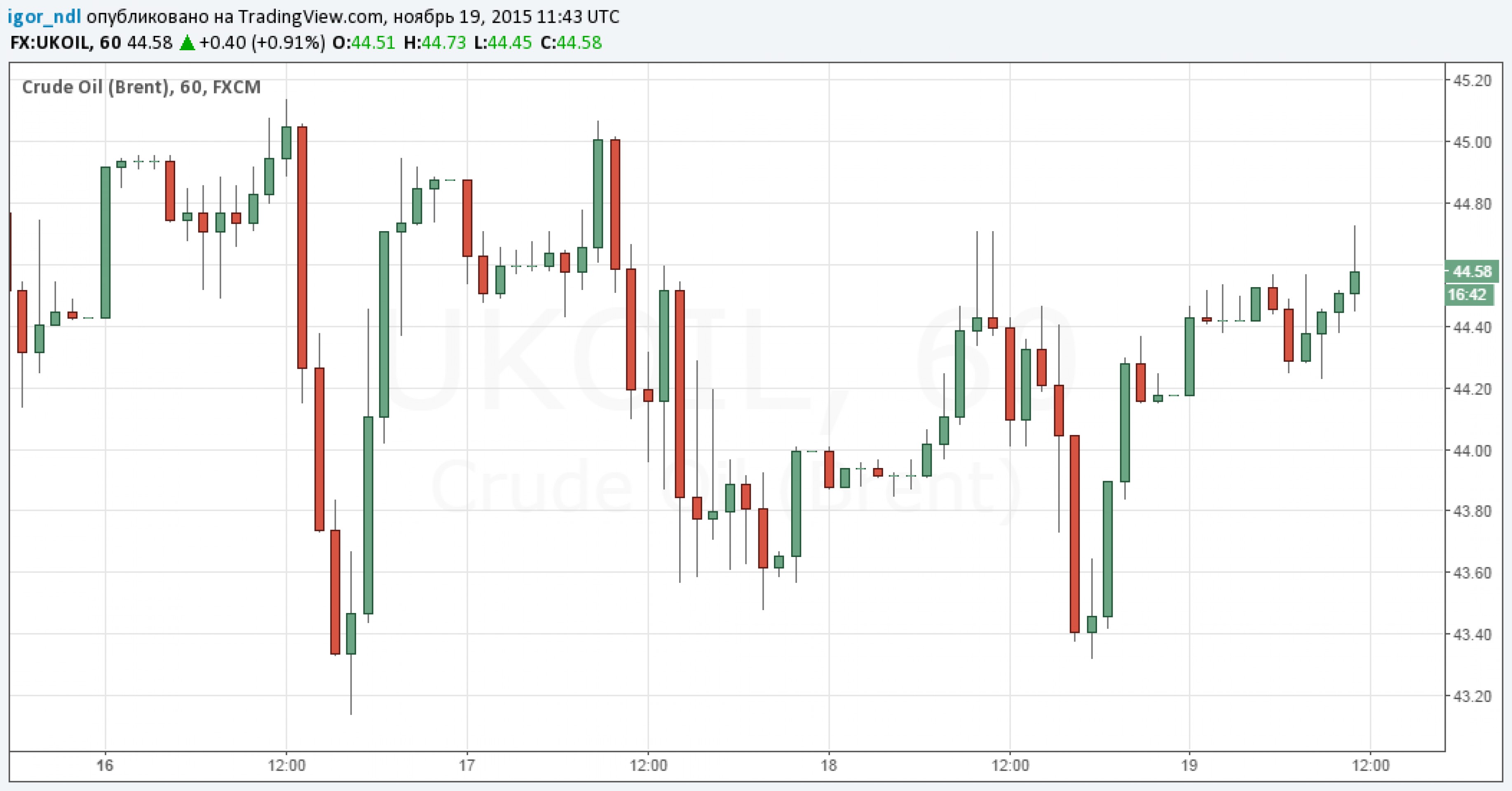 По состоянию на 14:45 смесь марки Brent стоит $44,58. Особых поводов для оптимизма нет, но и падать все время тоже невозможно. В конце концов есть не только предложение, но и определенный спрос, который в этом году заметно выше прошлогоднего.