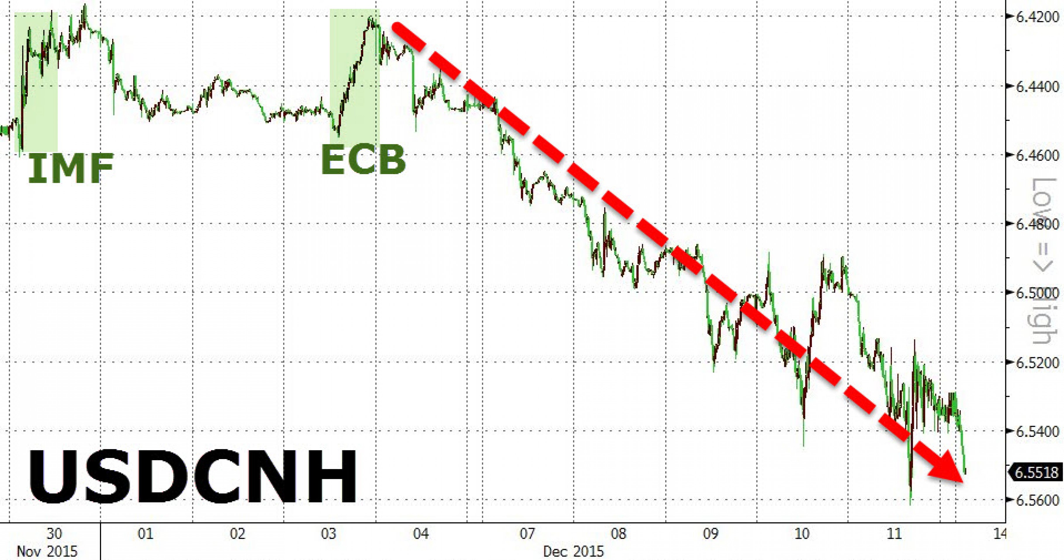 Вполне возможно, девальвация юаня - ответ на решение МВФ включить юань в корзину SDR с меньшим весом. Если восстановить картину событий последних нескольких лет, то такое мнение вполне может сложиться. В августе ЦБ Китая провел девальвацию, однако затем пошли переговоры о возможных проблемам при включении юаня в корзину резервных валют, и финансовые власти Поднебесной вроде бы прекратили ослабление.