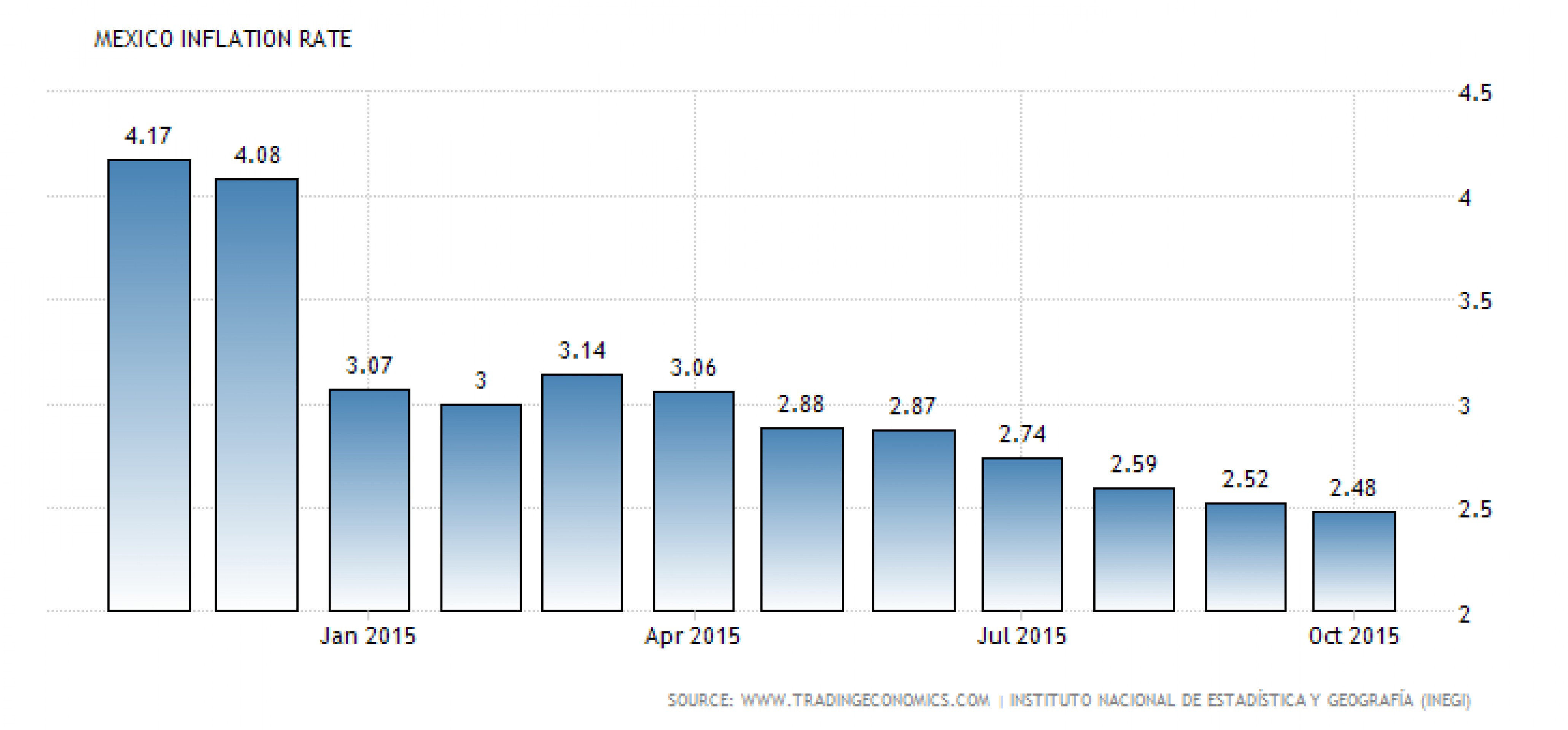 При этом, несмотря на падение курса валюты, инфляция в Мексике продолжает снижаться. Сейчас рост потребительских цен составляет всего 2,48%.
