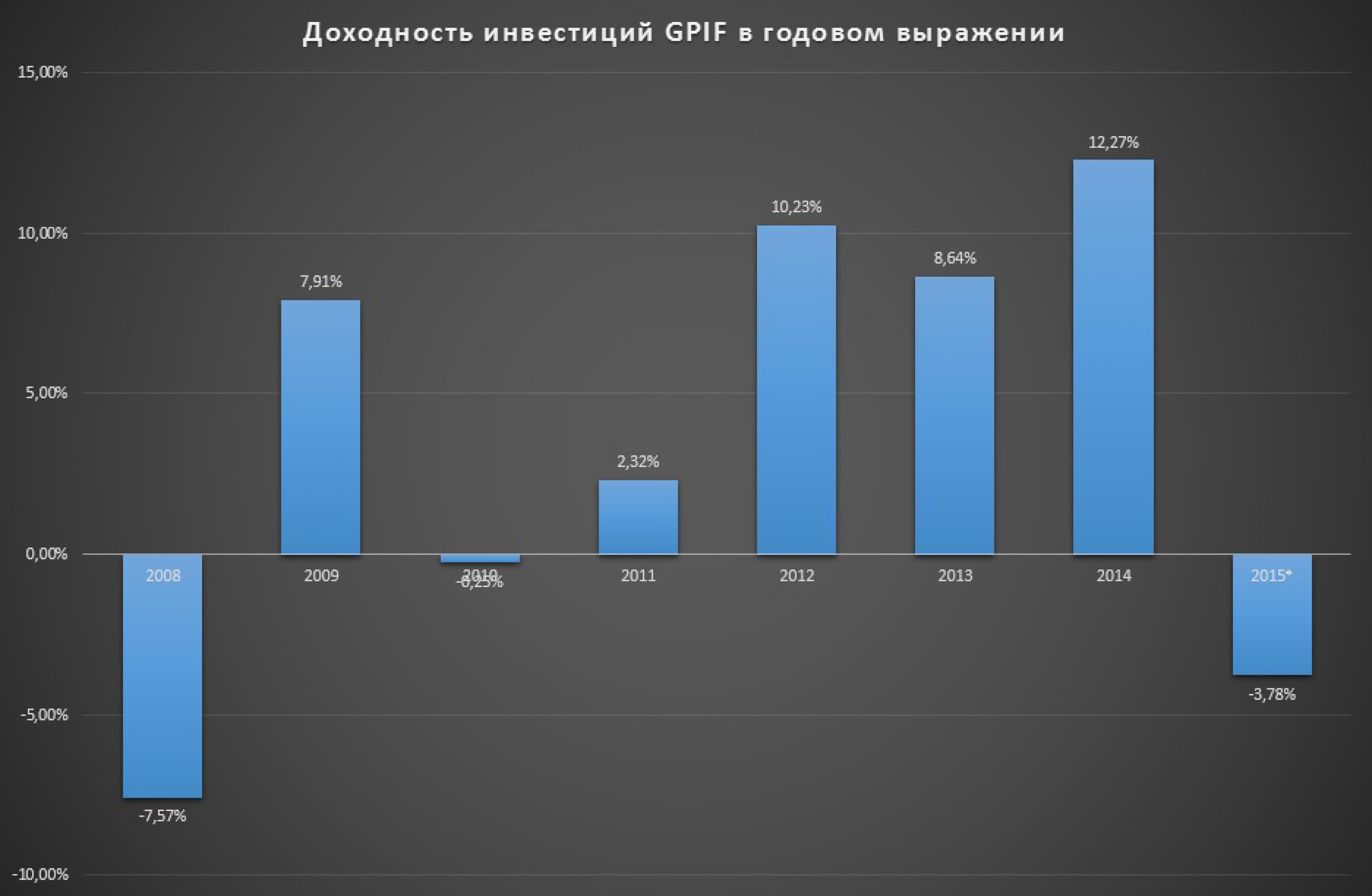 Государственный пенсионный фонд Японии (GPIF), крупнейший в мире пенсионный фонд, во II квартале 2015 финансового года зафиксировал рекордный с 2008 г. убыток от инвестиций, следует из отчета GPIF.