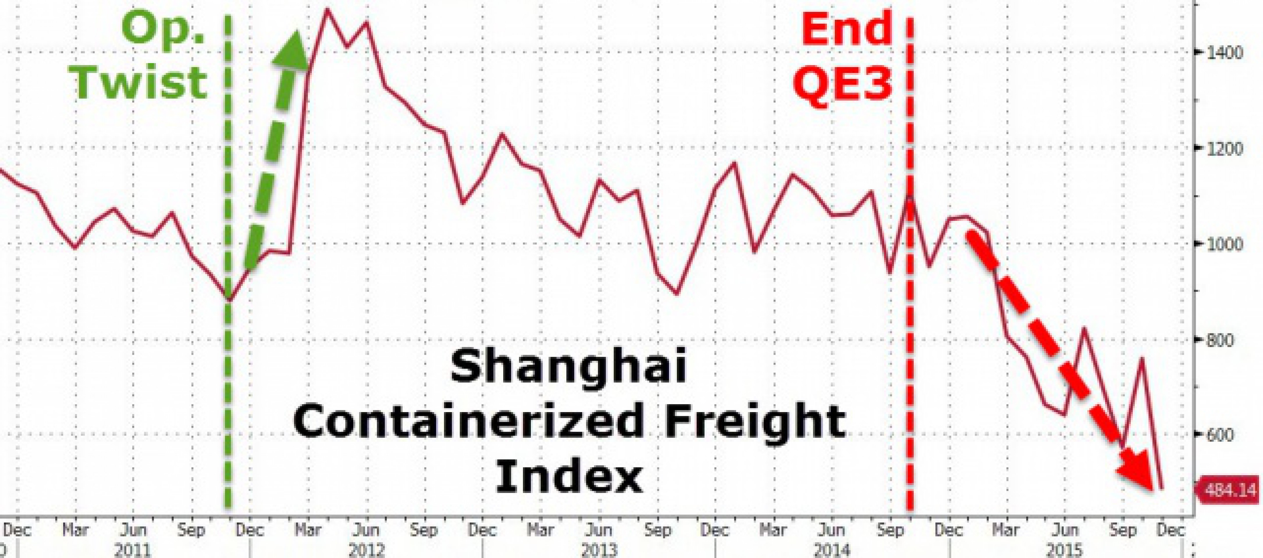 Несмотря на то что сейчас вроде бы как раз сезон активности в перевозках, их стоимость падает буквально на глазах. Опять же в конце ноября агентство Reuters сообщало, что спот-цена на перевозку контейнерами из Азии в Северную Европу всего за три недели рухнула на 70%. Что-то подобное можно было наблюдать лишь в 2008 г.