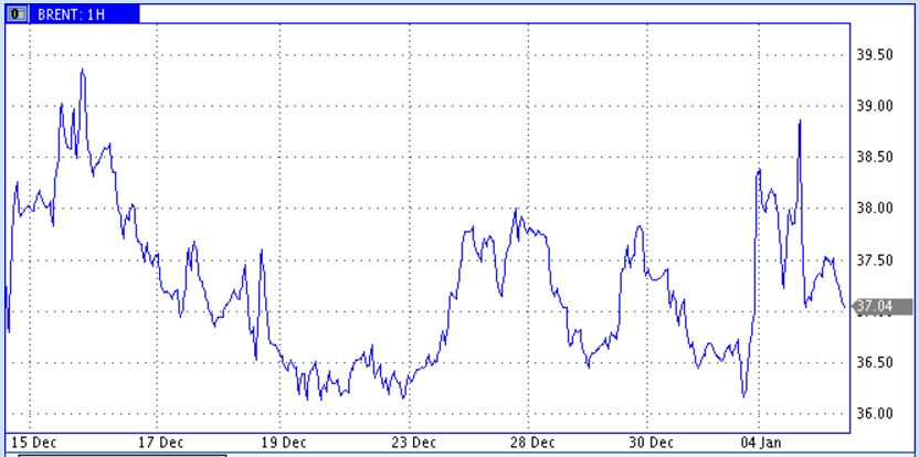 Год начался на фоне резкого обострения взаимоотношений Ирана и Саудовской Аравии. В результате цены на нефти открытии года резко дернулись вверх. С учетом существенного роста в последний торговый день года, цена нефти марки Brent на максимуме 4 января была на целых 7% выше, чем на закрытие 30 декабря. Однако затем на торгах 4 января последовал откат, который в основном был связан с сильными распродажами на всех рынках.