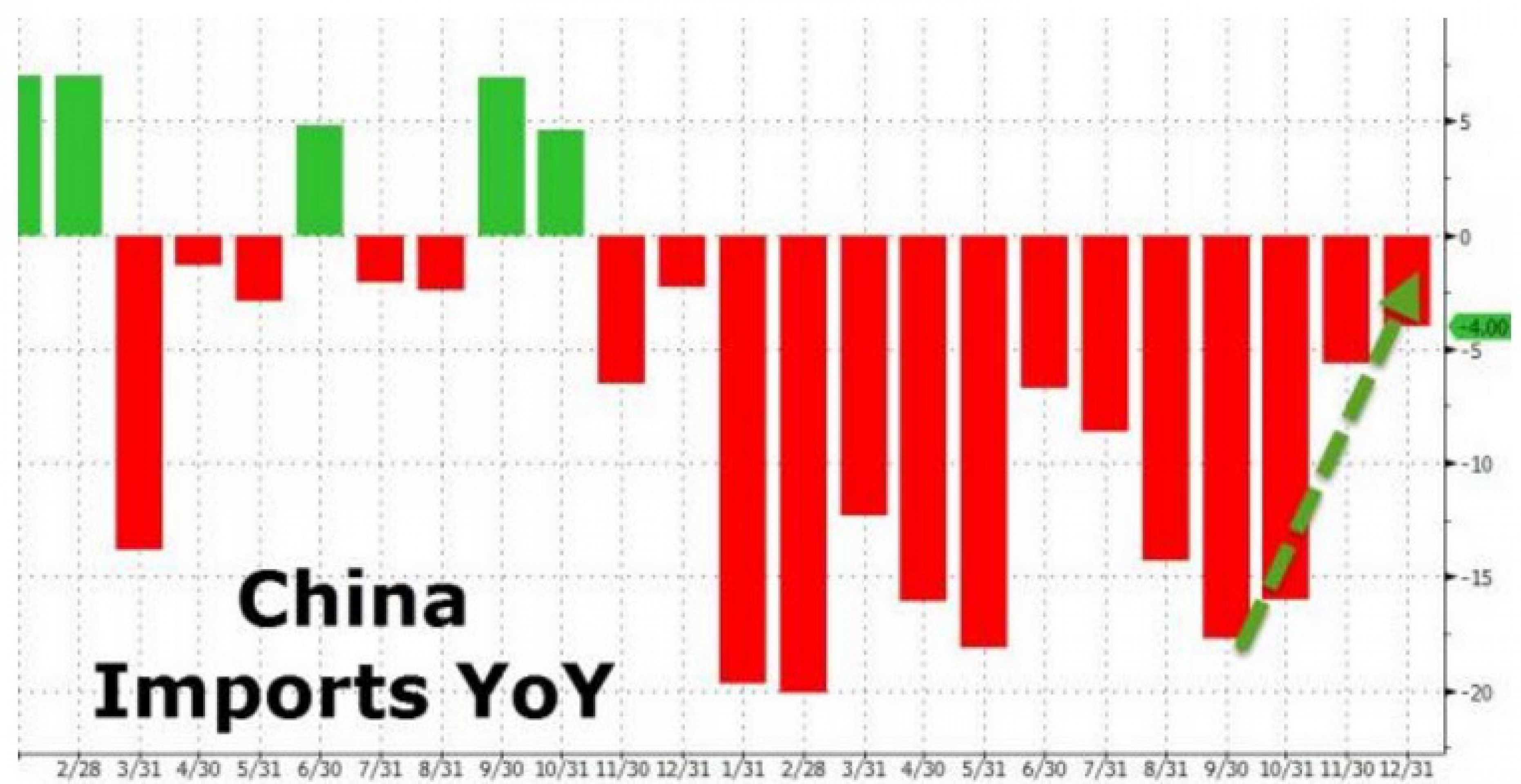 Опрошенные Bloomberg аналитики прогнозировали снижение экспорта в декабре на 4,1%, импорта - на 7,9%.