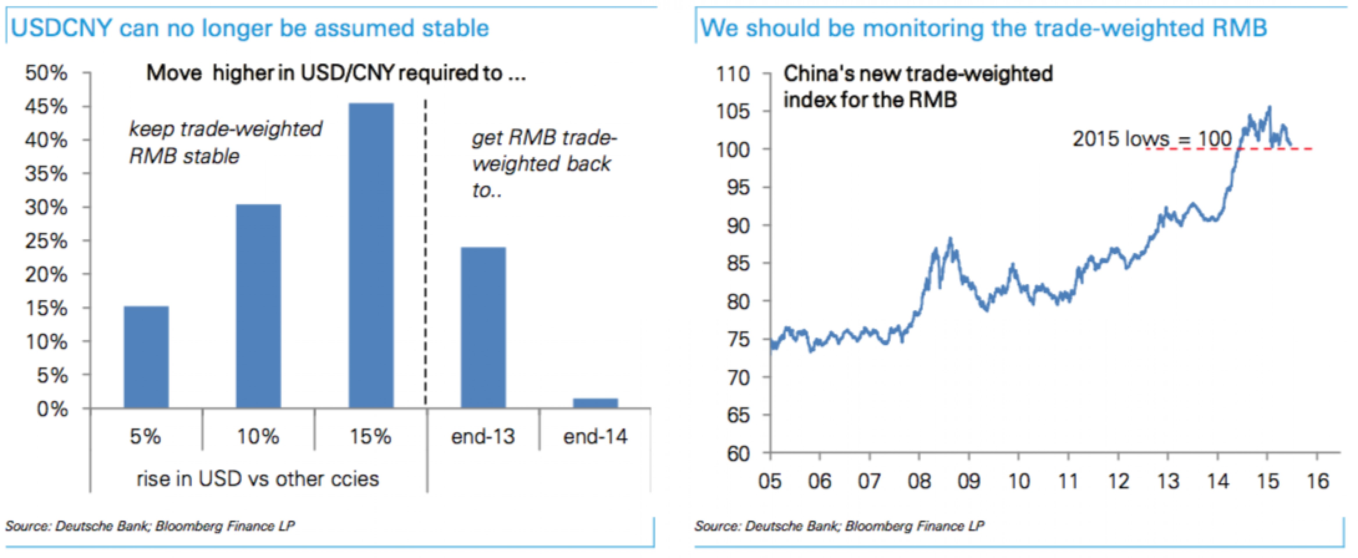 Но ясно, что если Китай надеется стабилизировать экономику через поддержку экспорта, то дальнейшая девальвация необходима. При этом, если глобальные валюты продолжат снижаться к доллару, Китаю необходимо сохранять приемлемый уровень торгово-взвешенного индекса юаня.