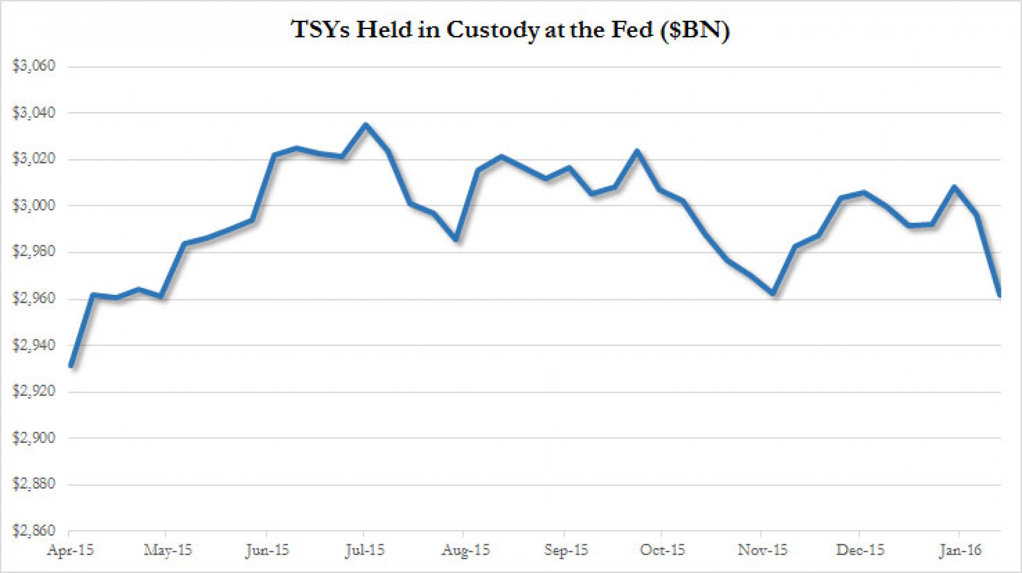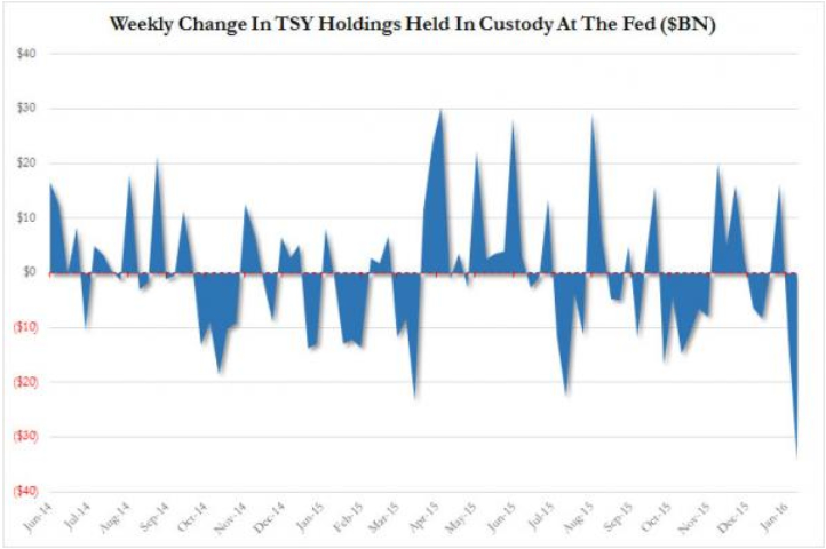 По последним данным ФРС, после того как центральные банки продали гособлигаций США на $12 млрд в первую неделю года, на неделе, завершившейся 13 января, они избавились еще от $34,5 млрд бумаг. И это самый худший старт года в истории.