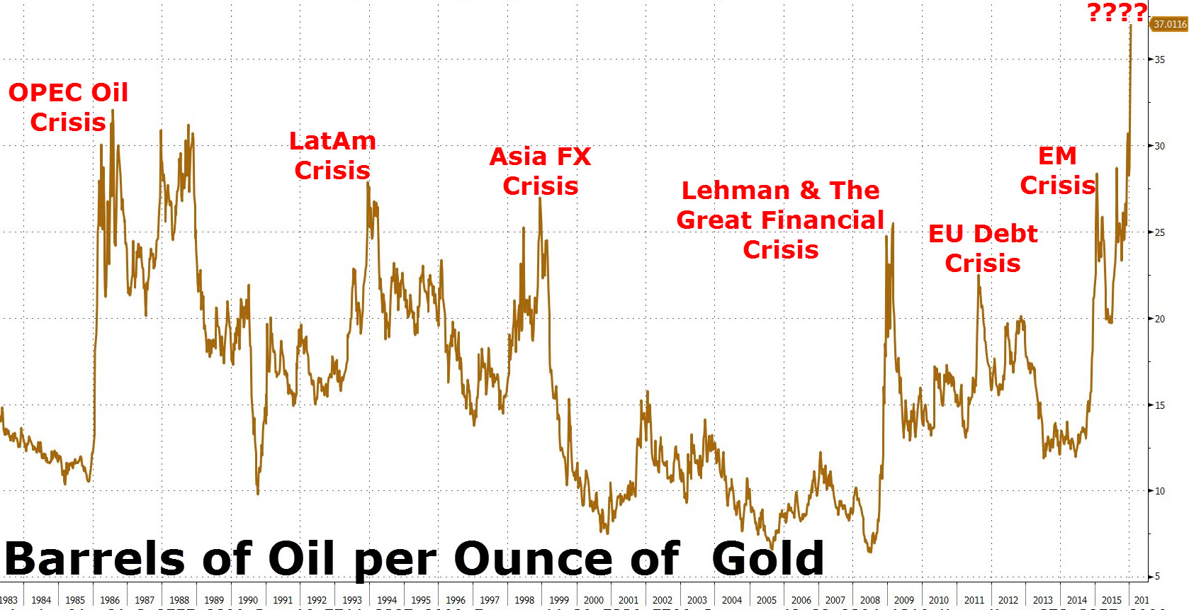 На ZeroHedge, ресурсе фриковом, но остроумном, напоминают, что каждый раз, когда это соотношение достигало своего локального пика, приключалась какая-нибудь серьёзная неприятность. Скажем, азиатская лихорадка или греческий долговой кризис.