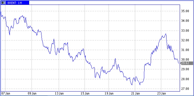 Цены на газ находятся в периоде консолидации, и с столь резких движений сейчас там не наблюдается. Спред между ценами двух сортов нефти (Brent и WTI) по обе стороны Атлантики вновь приблизился к минимальным отметкам. Так что для экономии слов о двух сортах нефти можно сказать: в среду с утра цены нефти продолжили снижение и опустились чуть ниже 30 долларов за баррель.