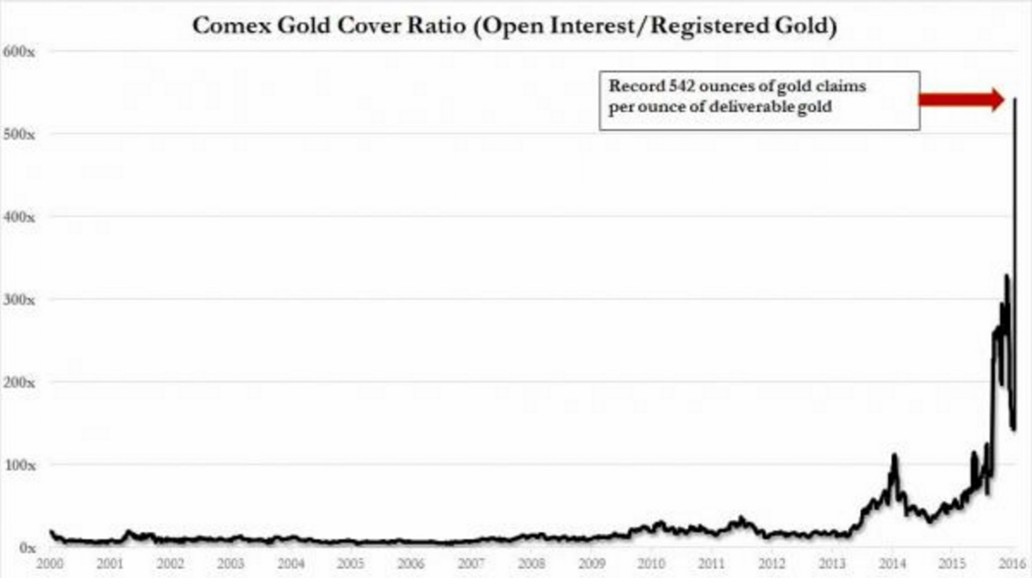 В 2000-2013 гг. коэффициент покрытия реальным золотом фьючерсного рынка Сomex составлял не менее 1 к 25 (одна унция металла на 25 унций бумажного золота).