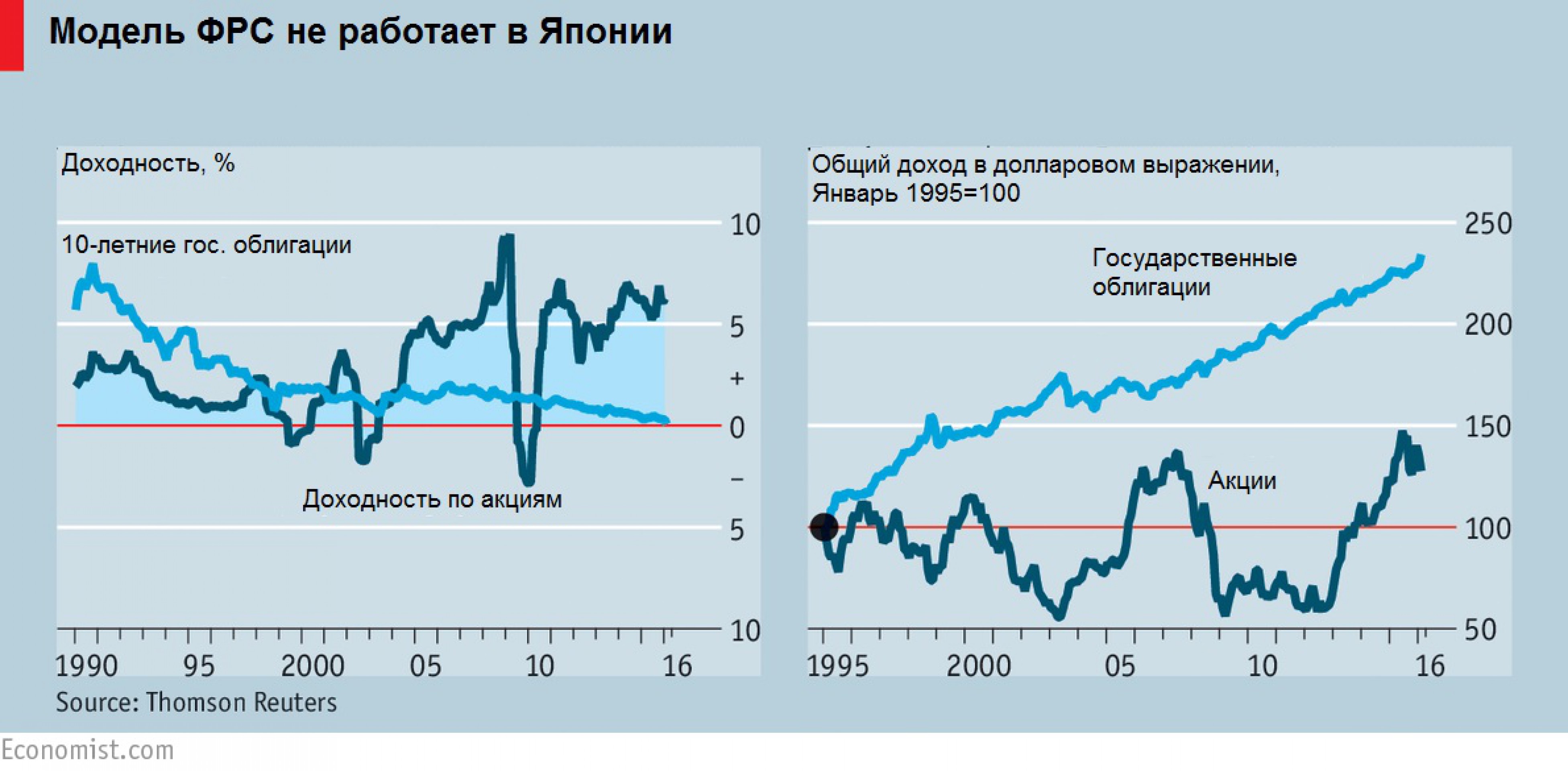 Япония - наглядный тому пример. Доходность ее государственных облигаций была низкой в течение двух десятилетий. Сделало ли это японские акции хорошим местом для инвестиций, как убеждают Бланшар и Ганьон? Совсем нет.