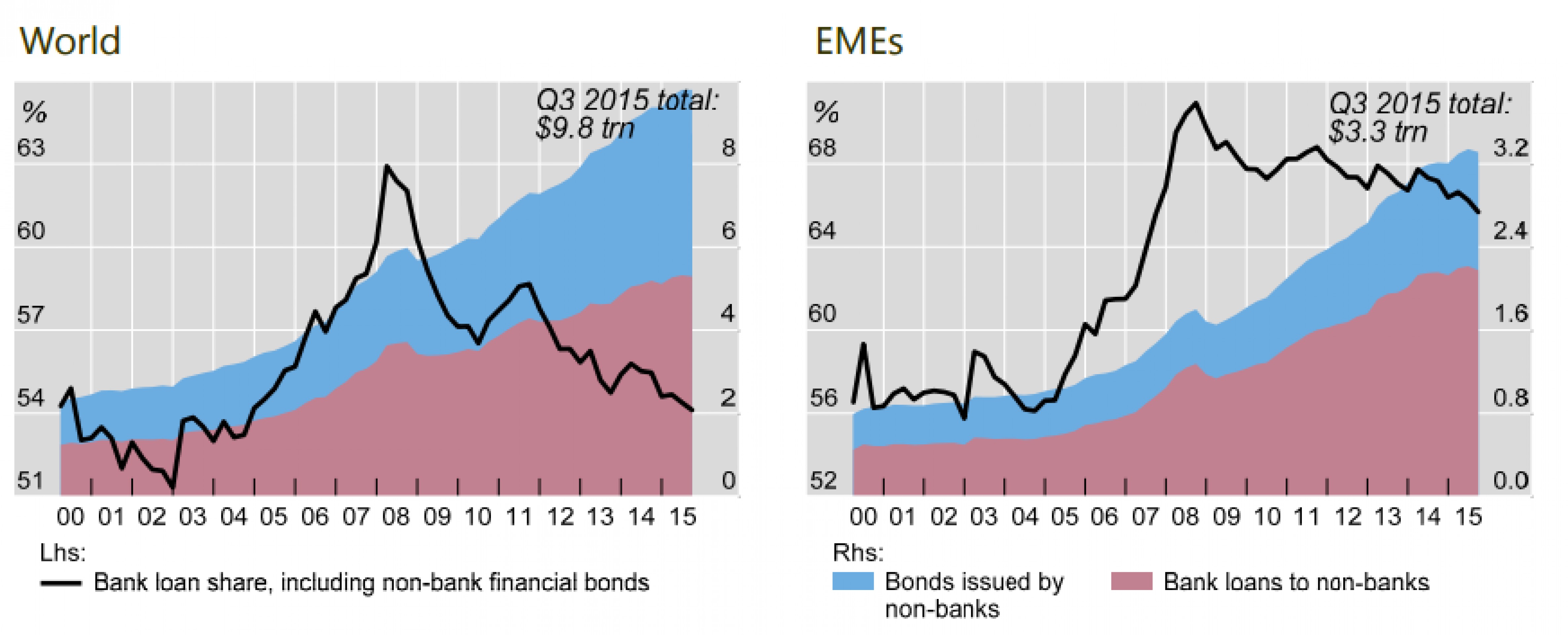 Как свидетельствуют данные Банка международных расчетов, в III квартале 2015 г. было зафиксировано сокращение доли кредитов, выданных нефинансовым организациям за пределами США.