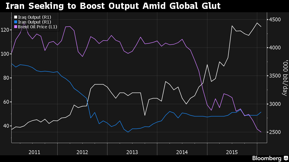 "Иран не откажется от своей доли рынка", - заявил министр нефти Ирана во вторник. Страна выкачивала 2.86 миллиона баррелей в день в январе, таким образом, выступая на пятом месте в ОПЕК по объему добычи. Ирак готов присоединиться к Саудовской Аравии по части заморозки добычи или даже ее снижению, если другие также пойдут на такой шаг. Венесуэла, которая присоединится к соглашению, и вовсе была инициатором такой встречи между крупнейшими экспортерами, включая Россию, Иран и Саудовскую Аравию, и будет только приветствовать заключение соглашения для возвращения баланса на рынок. Что касается других стран, то для них заморозка уровня добычи является добровольным делом.