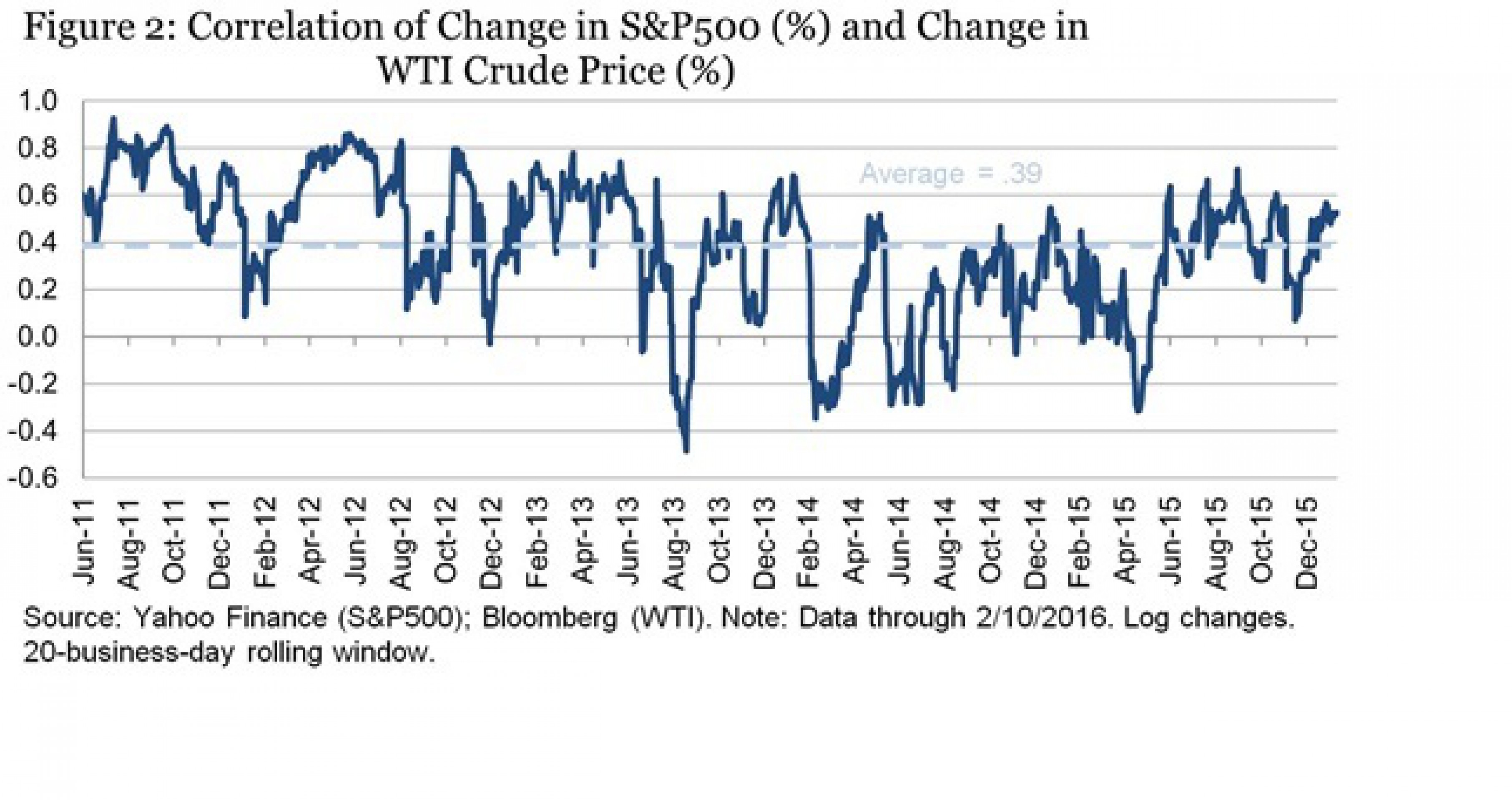 С другой стороны, падение цен на нефть объясняется снижением глобального спроса, что приводит к снижению корпоративных прибылей. Так или иначе, необходимо признать положительную корреляцию нефти и акций, и это не просто какое-то новое явление.