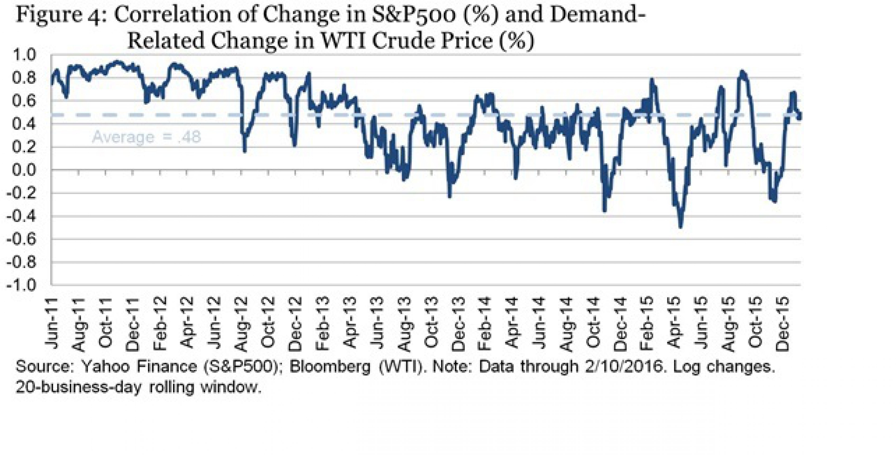 В итоге Бен Бернанке пришел к выводу, что корреляция рынка акций и нефти не является чем-то новым, она прослеживается уже пять лет или даже более. Большую часть этой положительной корреляции можно объяснить реакцией на следующие факторы: изменение спроса и общая неопределенность и неприятие риска.