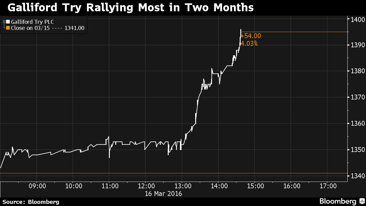 Жилищный сектор и строительство. Акции застройщиков, включая Galliford Try Plc, росли на обещаниях средств на проекты по дорожному строительству по всей стране. Индекс FTSE 350 Household Goods & Home Construction приблизился к рекордному максимуму.