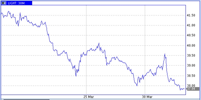 Согласно оценкам среднедневные объемы добычи за неделю, закончившуюся 25 марта, снизились еще на 16 тыс. бар. в сутки (до 9,022 с 9,038 mb/d неделей ранее). Это на 588 тыс. (-6,1%) баррелей в сутки меньше, чем в максимумах от 5 июня 2015 года и на 74 тыс. баррелей меньше, чем в минимуме прошлого года от 16 октября. Таким образом, снижение добычи сохраняет довольно приличный темп. (Ведь 16 тыс.b/d х 52 недели = 0,852 mb/d, а это уже очень солидно).