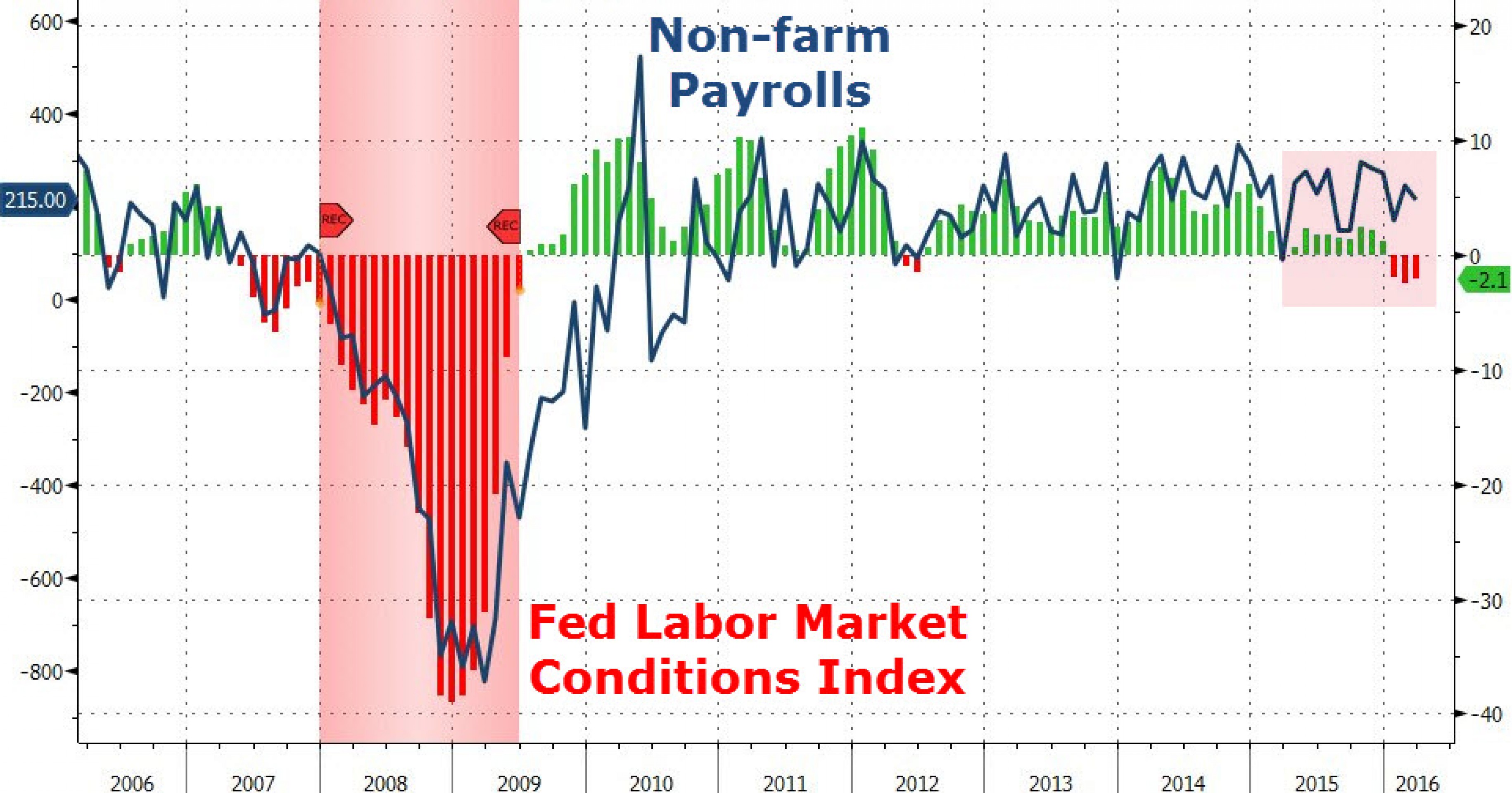 Дело в том, что у Федеральной резервной системы есть еще и свой собственный индекс (Labor Market Conditions Index), который призван отслеживать состояние на рынке труда США. В отличие от данных Бюро статистики США, Labor Market Conditions Index говорит о том, что ситуация вовсе не такая радужная, как может показаться на первый взгляд.