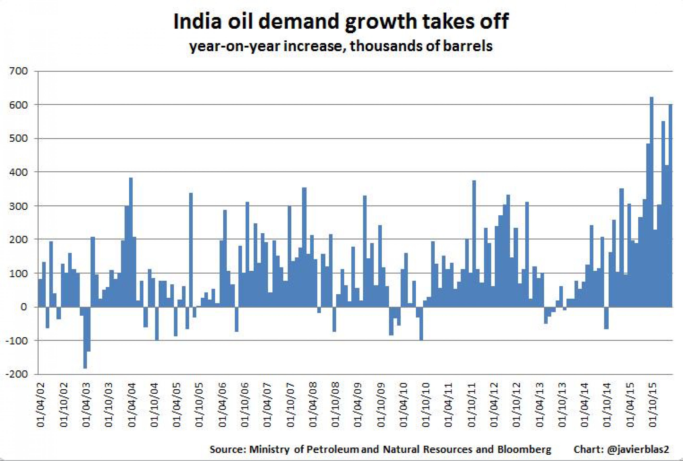 Есть также очень сильные данные по спросу из Индии: за последние шесть месяцев спрос со стороны этой страны в годовом выражении вырос в среднем на 450 тыс. баррелей в сутки, почти как у Китая в лучшие годы.