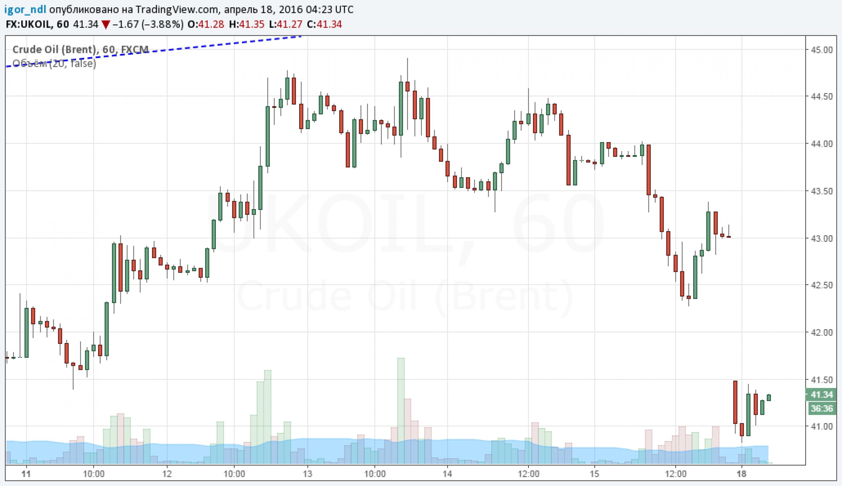 В первые минуты торгов котировки смеси Brent рухнули с $43 до $41 за баррель, то есть падение составляло около 6%. По состоянию на 7:20 по московскому времени наблюдается некоторая стабилизация.