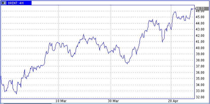 Настроения на рынке изменились и за прошедшие сутки цены энергоносителей показали заметный рост. В результате были обновлены годичные максимумы. За бочку нефти марки Brent дают уже больше 46 долларов.