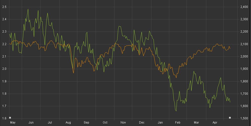 Прогнозируя низкую доходность облигаций в будущем, аналитики J.P.Morgan также рекомендовали продажу циклических акций, так как на их стоимость влияют всплески и снижения в экономике. Как показывают графики, упорно низкая доходность облигаций подтверждает слабый экономический рост, который, в свою очередь, бьет по циклическим акциям. “В конечном итоге, дивергенция между доходностью трежерис и индексами акций указывает на то, что один из двух рынков или оба - пройдут коррекцию, - заявил Брэд Фридлендер, менеджер портфеля активов в Angel Oak Capital Advisors. - Вероятный сценарий может заключаться в том, что два рынка могут “встретиться в середине”, когда акции будут снижаться, а доходность будет расти. И для обоих это означает низкую доходность в краткосрочной перспективе”.