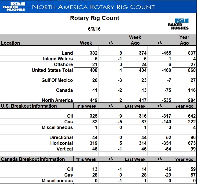 Вышла свежая порция данных от компании Baker Hughes по буровой активности на 3 июня. Число буровых на нефть в США выросло на 9 шт. При сегодняшнем их малом количестве это рост на целых 2,8%.
