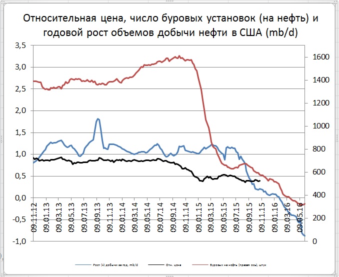 По сравнению с произошедшим падением это, конечно, крохи. (От максимумов число буровых составляет 20,2%). И на графике числа буровых подрастание последней недели выглядит как еле заметный хвостик. Но важно перовое подрастание после 9 месяцев почти непрерывного снижения.