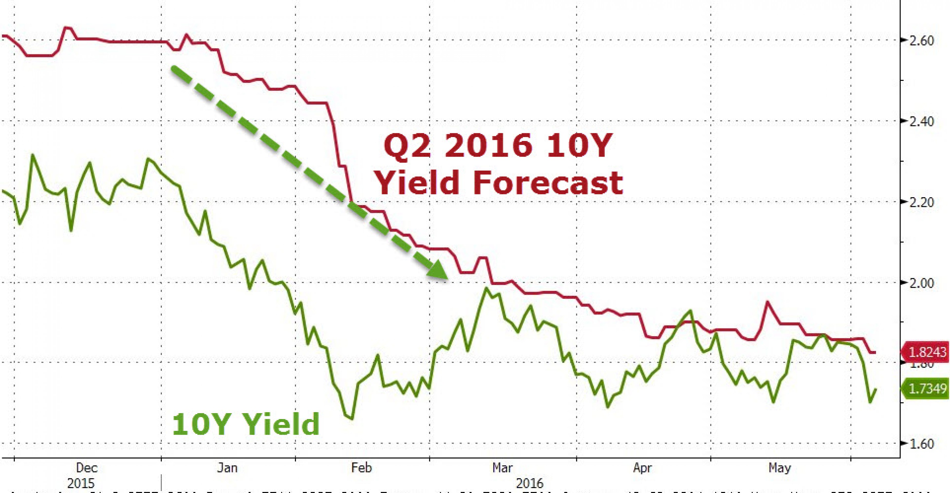 Еще в конце прошлого года эксперты, опрошенные Bloomberg, предсказывали, что доходность десятилетних трежерис к 30 июня будет находиться на отметке 2,55%, однако сейчас эти бумаги торгуются на уровне 1,73%. То есть всего за полгода ситуация кардинально поменялась.