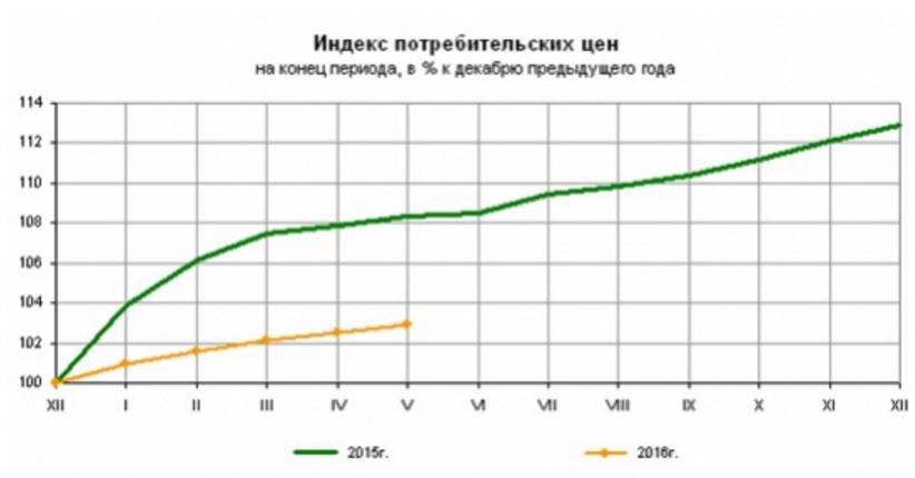 Первое. Возросла уверенность в устойчивости позитивных тенденций в динамике инфляции. Темпы роста потребительских цен оказались ниже, чем прогнозировалось. Годовая инфляция стабилизировалась на уровне 7,3%, месячная инфляция с учетом сезонности в годовом выражении — около 5%. Улучшение показателей экономической активности происходит при сохранении слабого потребительского спроса и высокой нормы сбережений, не создавая повышательного давления на потребительские цены. Инфляционные ожидания населения и бизнеса продолжают снижаться. Ситуация на мировых товарных рынках складывалась более благоприятно, чем ожидалось, что внесло вклад в снижение инфляции через динамику курса рубля и цен на продовольствие (влияние данных факторов имеет временный характер и будет снижаться, что учитывается при формировании прогноза инфляции). Регулируемые цены и тарифы будут проиндексированы в июле в соответствии с заявленными планами и в меньшей мере, чем годом ранее. В дальнейшем темпы роста потребительских цен продолжат снижаться, в первую очередь, под влиянием ограничений со стороны спроса. Банк России снизил прогноз по инфляции на конец 2016 года до 5-6%. С учетом принятого решения и сохранения текущей направленности денежно-кредитной политики годовая инфляция составит менее 5% в мае 2017 года и достигнет целевого уровня 4% в конце 2017 года.