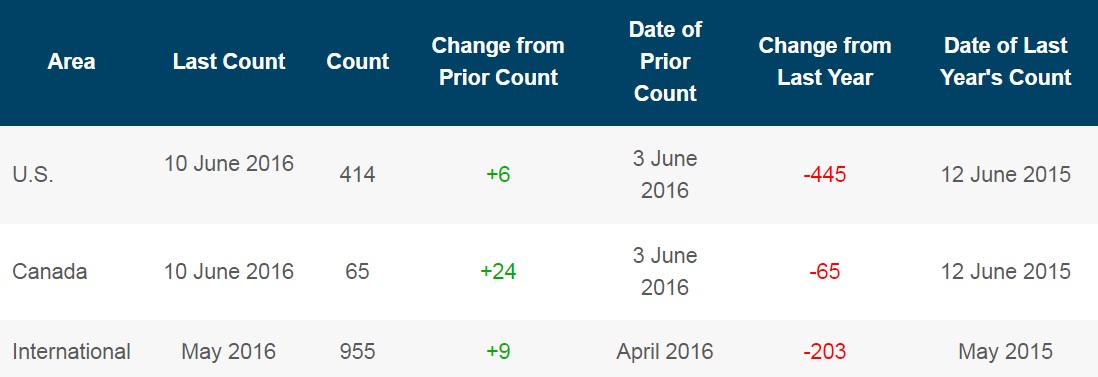 Вышла свежая порция данных от компании Baker Hughes по буровой активности на 10 июня. На этот раз число действующих буровых выросло на 6 штук (+3 на нефть и +3 на газ).