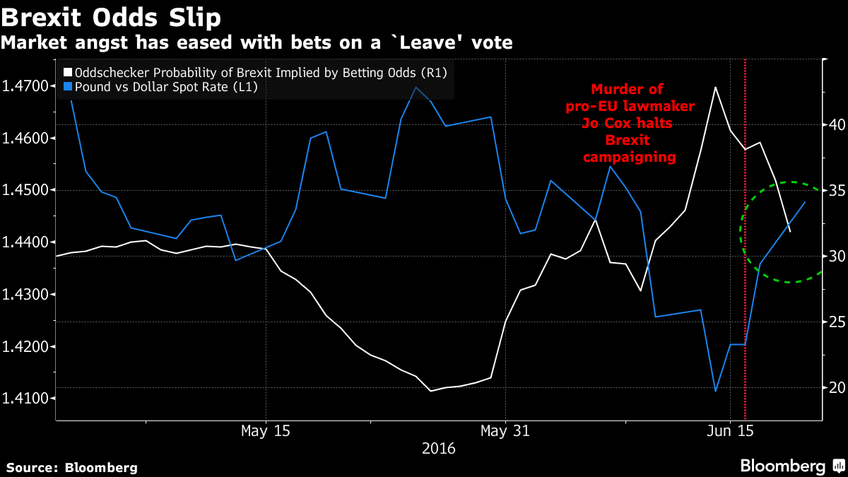 Индекс Stoxx Europe 600 вырос максимально с февраля, индекс Азиатско-Тихоокеанского региона MSCI рос вместе с фьючерсами на S&P 500. Фунт подскочил после того, как опросы показали, что количество сторонников нахождения Британии в составе ЕС выросло против противоположного лагеря на 3% перед референдумом в этот четверг. Иена падала впервые за семь дней. Нигерийская найра обвалилась на 22% после решения правительства отпустить валюту в свободное плавание, индийская рупия упала до минимума за этот месяц после того, как глава ЦБ заявил о своей отставке. Нефть была в состоянии ралли, тогда как промышленные металлы и золото снижались с пятимесячного максимума.