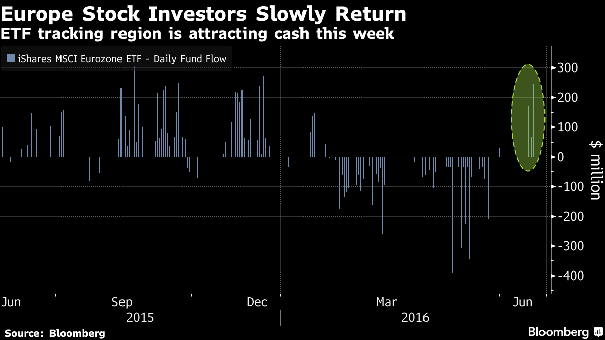 Последние недели для рынков были очень турбулентными, европейские акции падали до минимальных уровней с февраля перед восстановлением на 7.8% за пять дней вплоть по четверг. Индекс Stoxx 600 закрылся ниже на 1.3% максимума 20 апреля. В четверг количество акций, меняющих руки, выросло на 25% выше 30-ти дневной скользяшей средней. Европейские фирмы выражали опасения в отношении неопределенности перед голосованием. Данные сегодня показали, что даже притом, что промышленность еврозоны росла быстрее ожиданий в июне, рост сектора услуг не дотягивал до прогнозов. Индекс обоих секторов снизился до 52.8 с 53.1 в мае - минимума с января 2015 года.