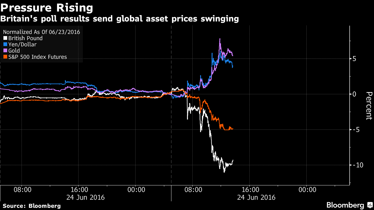 Доходность десятилетних трежерис упала на 29 базисных пункта до 1.46%, что стало крупнейшим дневным снижением с 2009 года; аналогично доходность японских бумаг достигает рекордного минимума на уровне -0.215, немецких - до беспрецедентных 0.175%