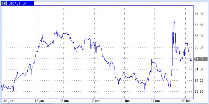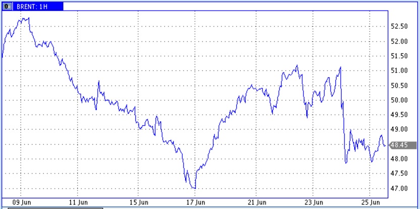 Индекс ММВБ, даже несмотря на пятничный провал, формально закончил неделю с положительным результатом. В понедельник умеренный минор на рынке сохранился. По индексу РТС недельный (и это тоже следствие реакции на Brexit) результат почти нулевой. Тем не менее, для фондового рынка основным фактором по-прежнему остаются цены на нефть, и ключевой по-прежнему является зона вблизи 50 долларов за баррель. Результаты Brexit качнул ситуацию вниз, но индекс РТС продолжает находиться в стадии консолидации - короткого движения вниз пока недостаточно для выведения ситуации из чуткого динамичного равновесия. Представляется, что к средине июля эта интрига должна будет разрешаться в ту или иную сторону.