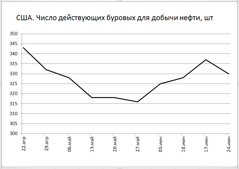 Цены нефти, как и многие иные рынки, в пятницу показали слабость на фоне укрепления доллара. Цены в моменте потеряли около 3 долларов за баррель. Прохождение важнейшей точки бифуркации постепенно вновь позволит обратить взоры на важнейшие причины, двигающие балансы спроса и предложения. В этом смысле с большим нетерпением будем ждать итоговых цифр по балансам по итогам июня. По-прежнему очень важной остается динамика добычи нефти в США, которая продолжает снижаться рекордными темпами. За прошедший год снижение составило 0,933 млн. баррелей в день, что больше, чем рост добычи в Иране. Дальнейшее развитие динамики добычи в США становится одним из важнейших раздражителей для нефтяных цен. Появившиеся надежды на приостановку падения добычи нефти в США, вызванные небольшим подрастанием буровой активности в стране, на прошедшей неделе немного были притушены – после трех недель подрастания число действующих буровых установок в США за последнюю неделю вновь снизилось.