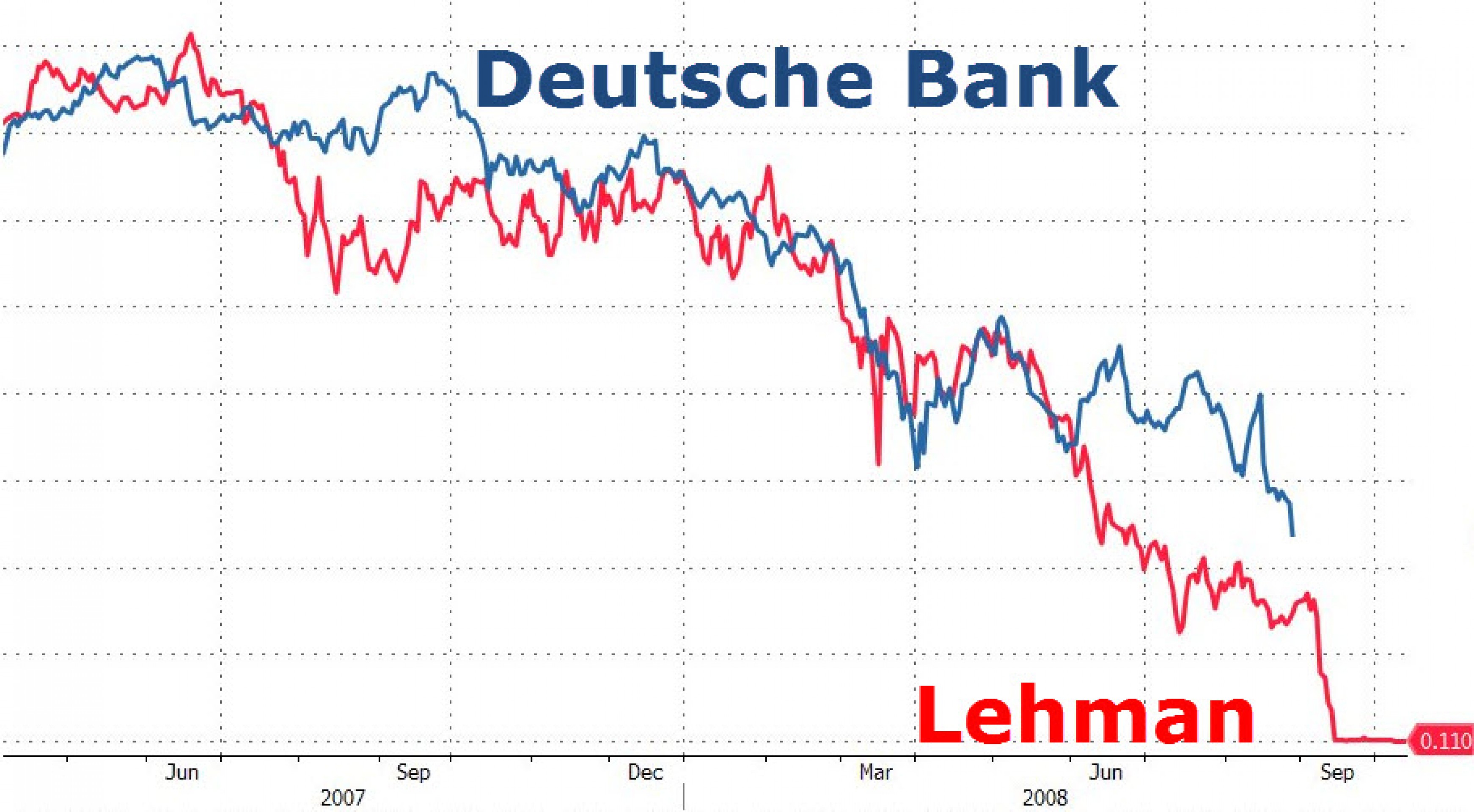 В результате Deutsche Bank не только должен бороться со своими внутренними проблемами, но и делать вид, что все в порядке. И это получается не очень хорошо, так как Deutsche Bank постоянно сравнивают с печально известным Lehman Brothers.