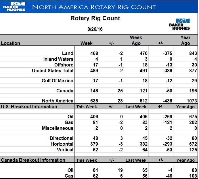 Вышла свежая порция данных от компании Baker Hughes по буровой активности на 26 августа.