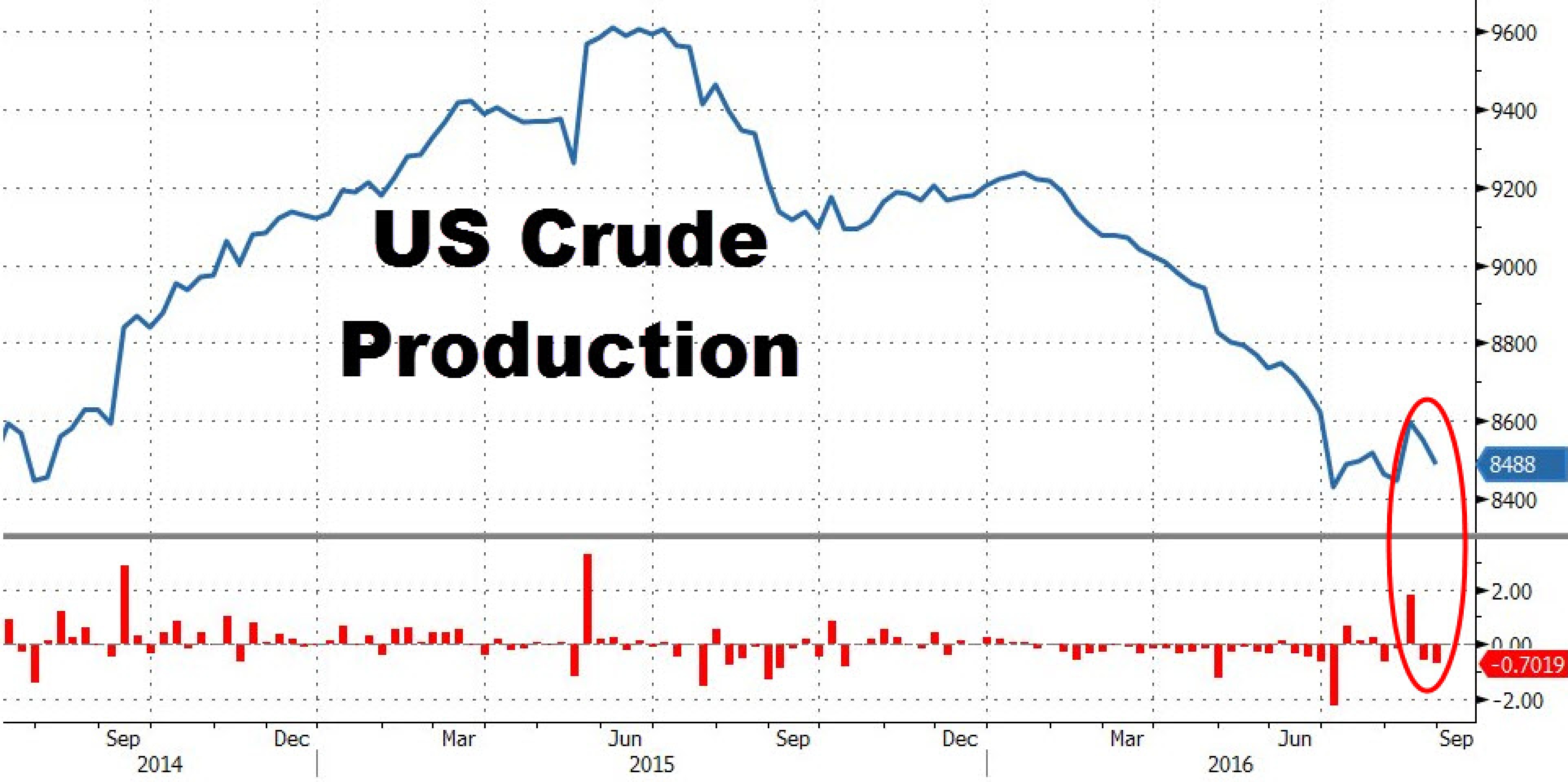 Напомним, в Штатах уже несколько месяцев наблюдается рост числа буровых установок, на фоне чего многие ожидали увеличения и самой добычи. Пару недель назад эти ожидания подтвердились: тогда добыча выросла сразу на 150 тыс. баррелей, но затем этот рост почти полностью был нивелирован.