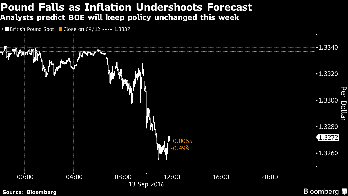 Фунт падал против большей части из 16 основных валют после выхода данных о том, что рост потребительских цен соответствовал показателям прошлого месяца, которые были максимальными с конца 2014 года. Банк Англии, сокративший ключевую процентную ставку и расширивший программу закупок облигаций в прошлом месяце, как считают аналитики, сохранит меры стимулирования неизменными 15 сентября. Аналитики заявили, что инвесторы и трейдеры также продавали фунт после недавнего ралли перед заседанием ФРС и Банка Англии на следующей неделе.