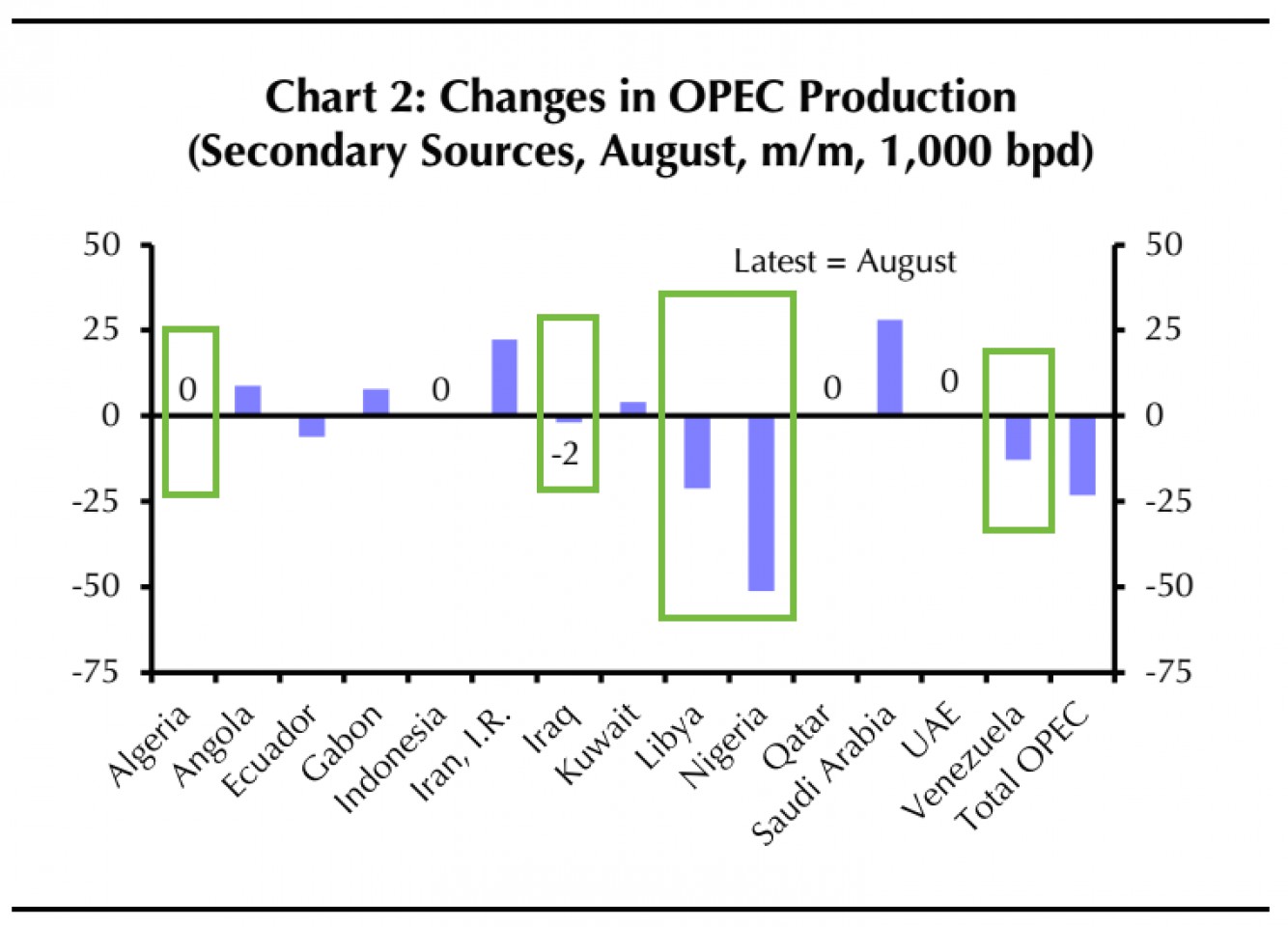 Но что интереснее всего, Саудовская Аравия и Иран смогли нарастить добычу нефти, в то время как Нигерия, Ливия, Венесуэла и Ирак, напротив, столкнулись с ее падением.
