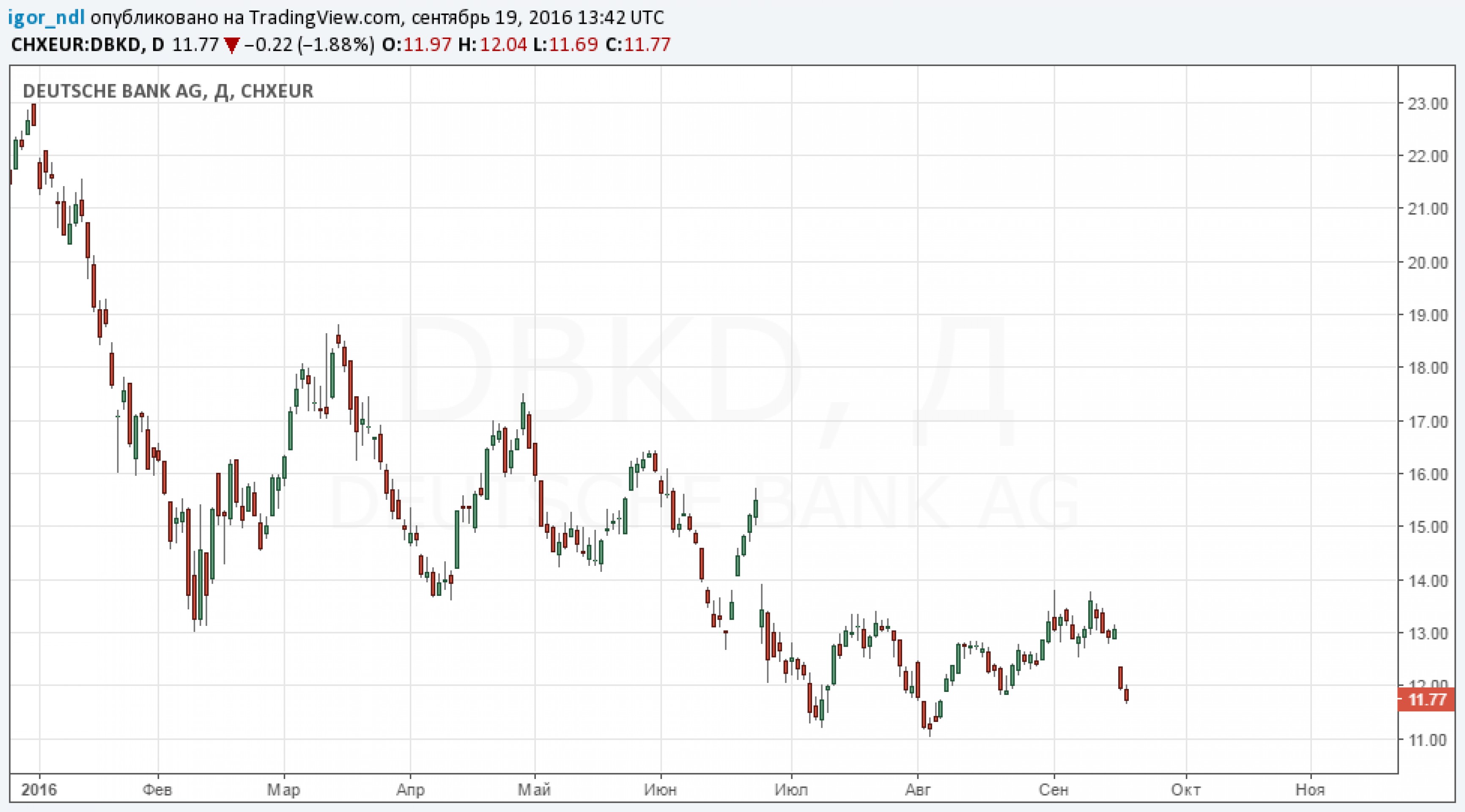 Напомним, в пятницу пришла новость о том, что Минюст США требует от Deutsche Bank $14 млрд. В обмен на деньги власти готовы урегулировать расследование в отношении крупнейшего банка Европы. Американские регуляторы считают, что в период до 2008 г. Deutsche Bank, наряду с другими банками, занижал оценки рисков по ипотечным бумагам, а затем продал их государственным компаниям США Fannie Mae и Freddie Mac, а те в свою очередь потерпели убытки.