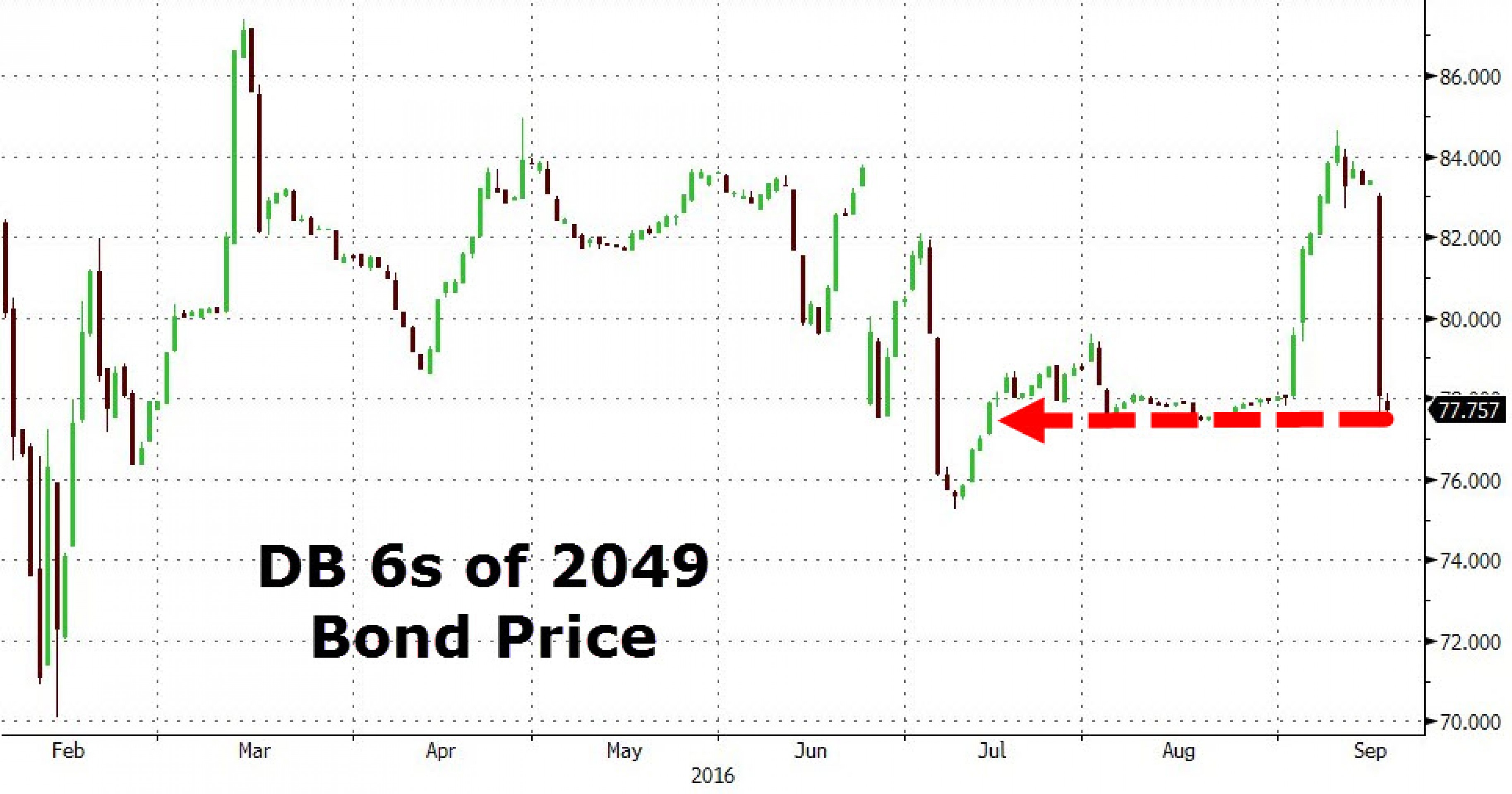 Распродажи можно наблюдать и в облигациях крупнейшего банка Европы. Вся эта рыночная шумиха происходит на фоне заявлений аналитиков, которые предупреждают: банк будет очень сильно нуждаться в дополнительном капитале, даже если вопрос с Минюстом США будет урегулирован за счет резервов.