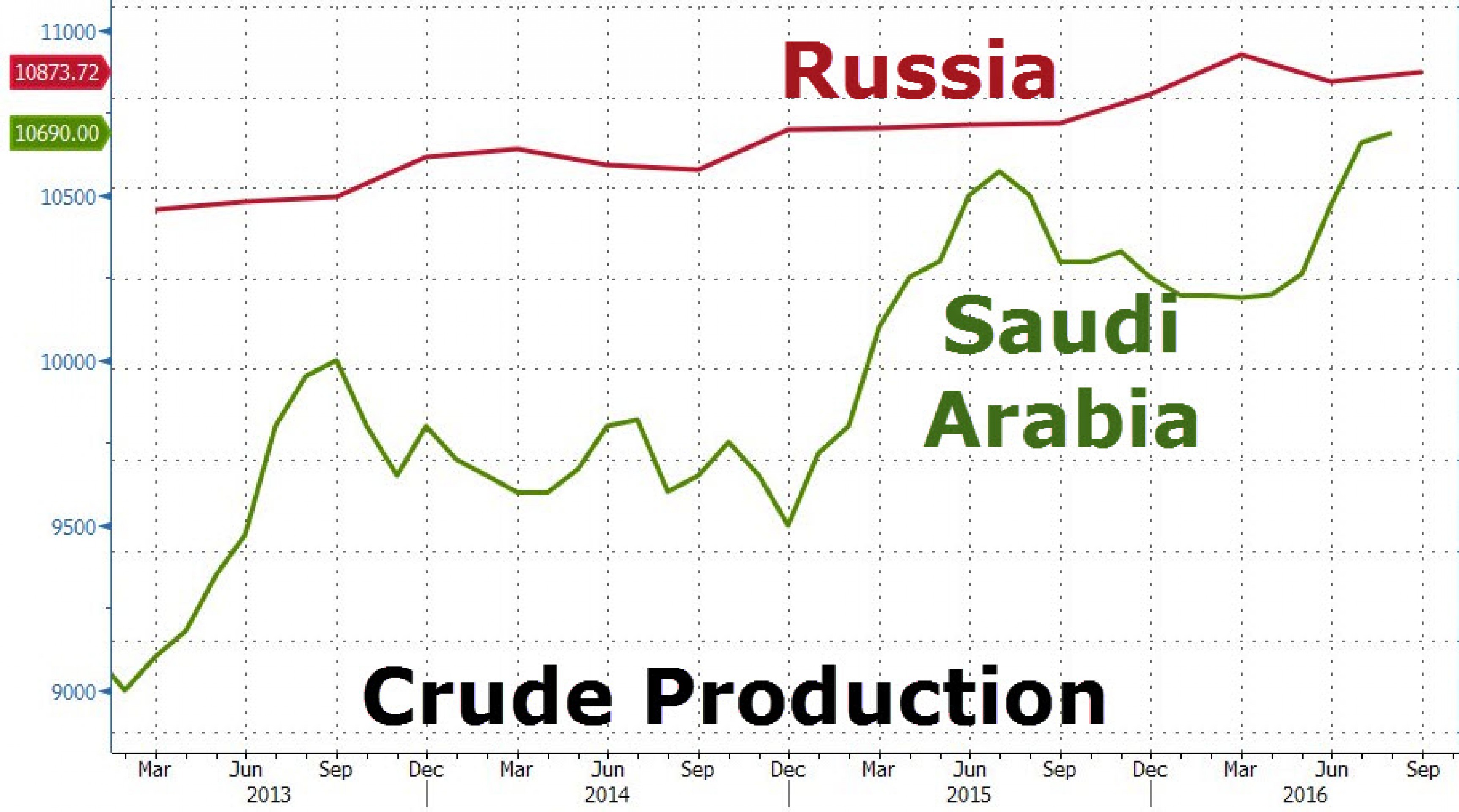 Напомним, в конце сентября в Алжире страны ОПЕК вроде бы достигли соглашения о сокращении добычи на уровне 32,5-33 млн баррелей в день. Официальное обсуждение и подписание этого соглашения должны состояться в ноябре на заседании ОПЕК.