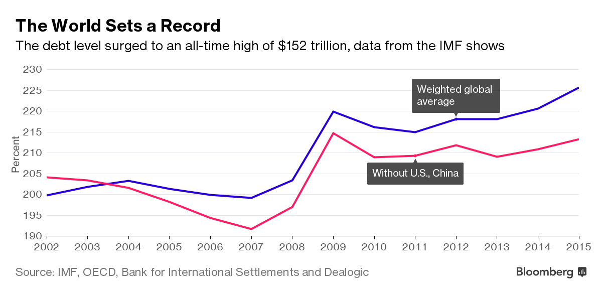 Низкий глобальный рост усложняет выполнение своих обязательств, “подготавливая почву для порочной замкнутой цепи, в которой низкий рост препятствует снижению долгового бремени и усугубляет долговое похмелье”, - заявили в Фонде. Массивная задолженность усложняет задачу для политиков по всему миру, которые должны были использовать фискальную политику для наращивания роста, тогда как сейчас это происходит на фоне снижения возможностей в контексте стимулирования экономики центральными банками. Финансовые руководители и высокопоставленные чиновники центральных банков из 189 стран-членов встречаются в Вашингтоне на ежегодном заседании Фонда, который был придуман во время Второй Мировой Войны для наблюдения за глобальной валютной системой. Не существует консенсуса в отношении того, какой именно объем долга к ВВП считать тревожным. Тем не менее, финансовый кризис ассоциируется с чрезмерным объемом долга частного сектора в развитых и развивающихся экономиках. В исследовании также обозначили связь между высоким уровнем долга и снижением роста даже после прохождения кризиса.