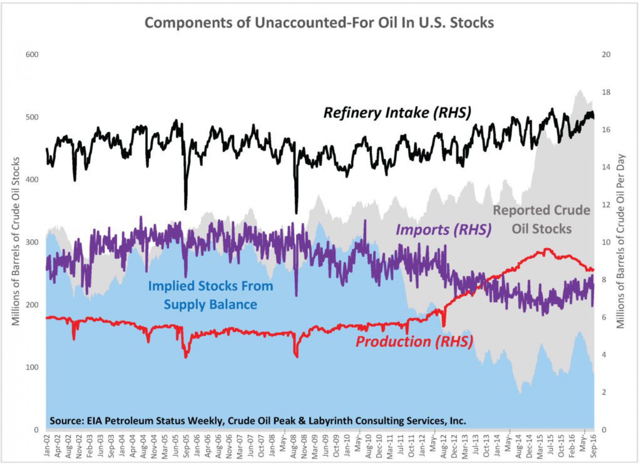 Американские запасы нефти пополняются неизвестно откуда взявшейся нефтью. Запасы нефти больше, чем то количество, которое можно предположить из показателей внутренней добычи и импорта.