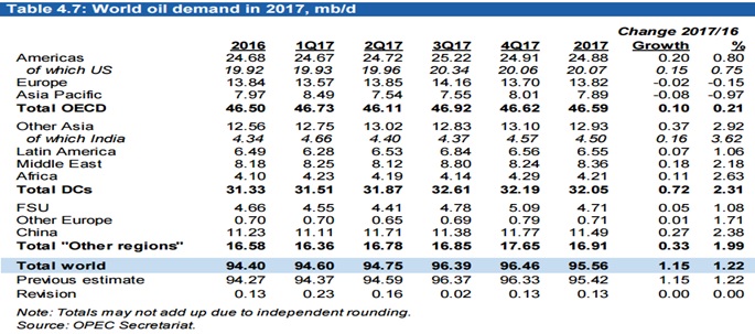 В 2017 году ожидается небольшое замедление темпов роста спроса. Но все равно, это будут еще плюс дополнительные 1,15 mb/d.