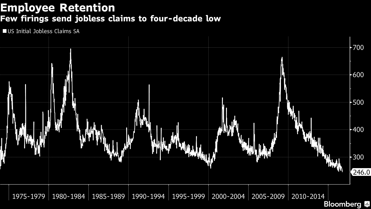 Работодатели неохотно увольняют рабочих, так как доступное количество потенциальных кандидатов иссякает, а количество открытых вакансий около рекордных максимумов, что создает условия для роста зарплат, и может далее стимулировать ФРС к повышению процентных ставок к концу года. Заявки на пособия оказывались на уровне ниже 300k в течение 84 недель подряд, что было наиболее длинным периодом таких значений, и это соответствовало уровню здоровой ситуации на рынке труда.