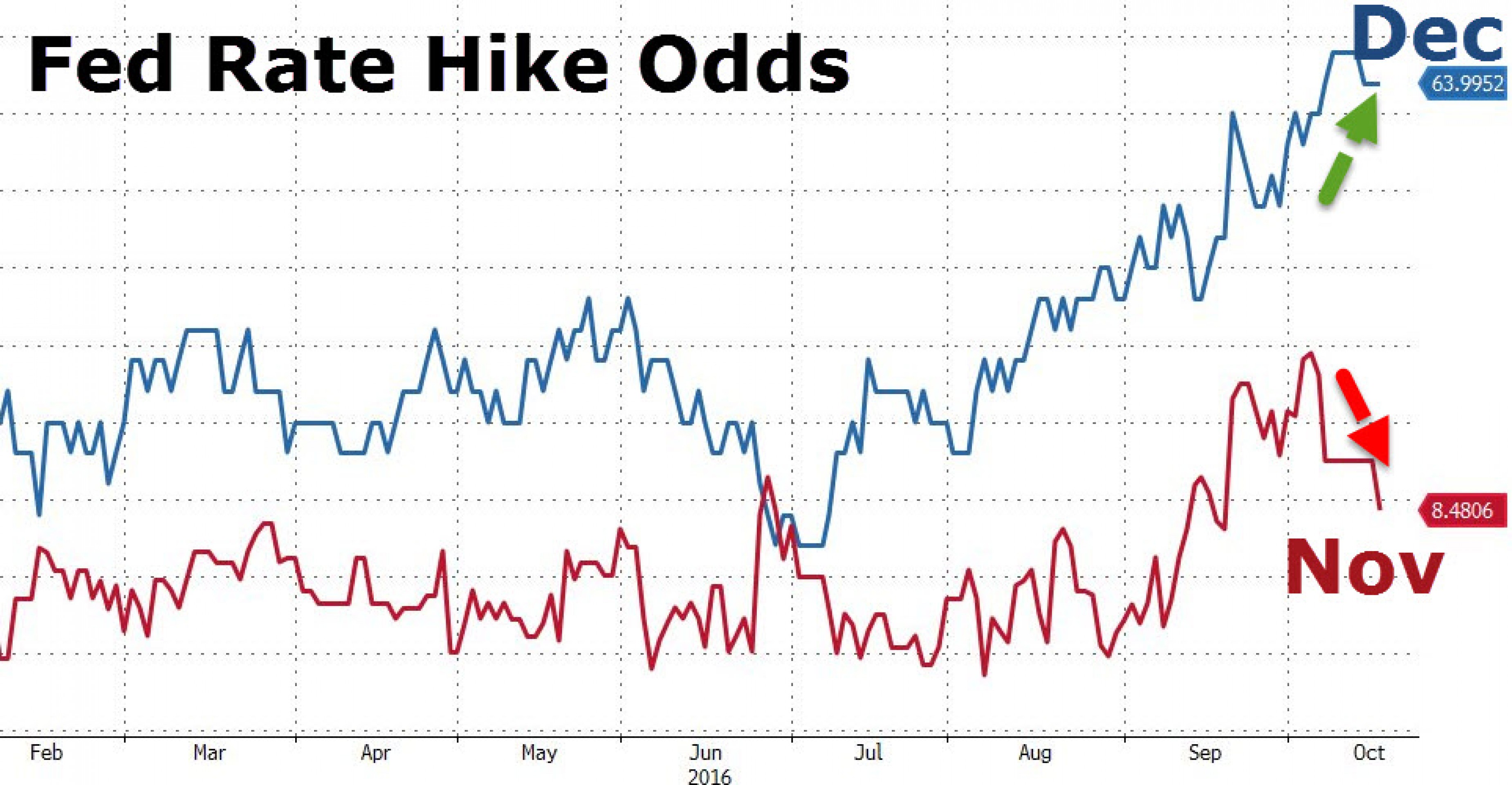 Что же по этому поводу думает рынок? Трейдеры практически не верят в повышение ставки на ноябрьском заседании. Вероятность такого события рынок сейчас оценивает примерно в 8%.