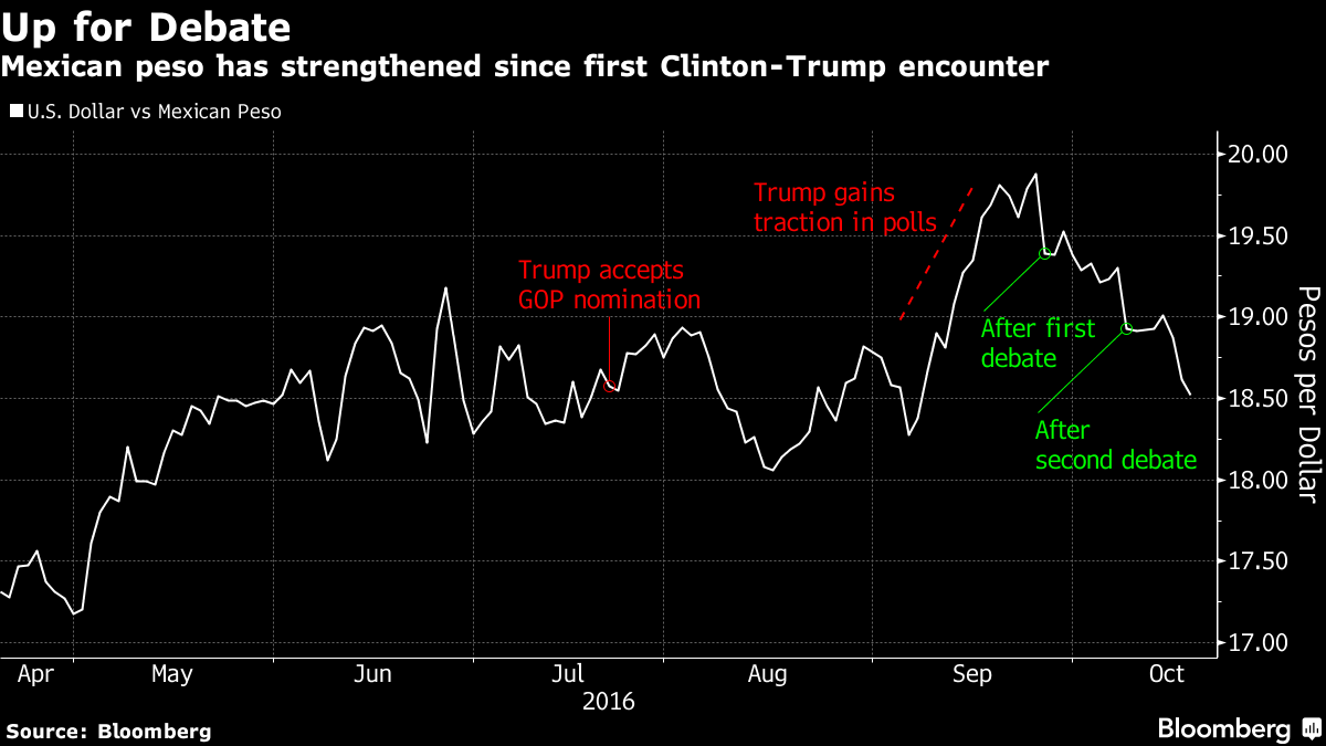 Мексиканский песо укрепился почти на 0.4% до 18,4558 за доллар, то есть это максимальный уровень с 8 сентября. Валюта набрала около 5% в этом месяце на растущей убежденности в том, что Трамп все же проигрывает эти выборы. Песо чувствителен к перспективам Трампа, так как он предлагает пересмотр торговых переговоров или сворачивание торговых сделок с Мексикой, а также блокирование денежных переводов, чтобы заставить страну платить за стену на границе с США. Сырая нефть снижалась на 0.4% до $51.39 за баррель в Нью-Йорке после роста на 2.6% в среду. Официальные данные показали снижение запасов нефти в США на 5.25 млн. баррелей на прошлой неделе, таким образом, это минимальный уровень с января, тогда как 10 аналитиков, опрошенных Bloomberg, прогнозировали рост запасов.