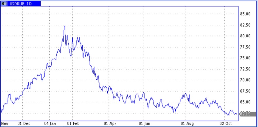 Рубль забрался на высоты, которые все больше беспокоят представителей власти. Недаром ходят разговоры о переходе к пополнению ЗВР со стороны Банка России, а так же о возможной продаже долларов из оставшихся фондов Минфина. Но пока рубль продолжает попытки к укреплению. Его дальнейшая судьба рубля будет зависеть в основном от динамики цен нефти. Длительный период укрепления рубля все еще может завершиться финальным аккордом спроса на российскую валюту. Тем более что такие варианты могут возникнуть и в связи с проходящими приватизационными маневрами.