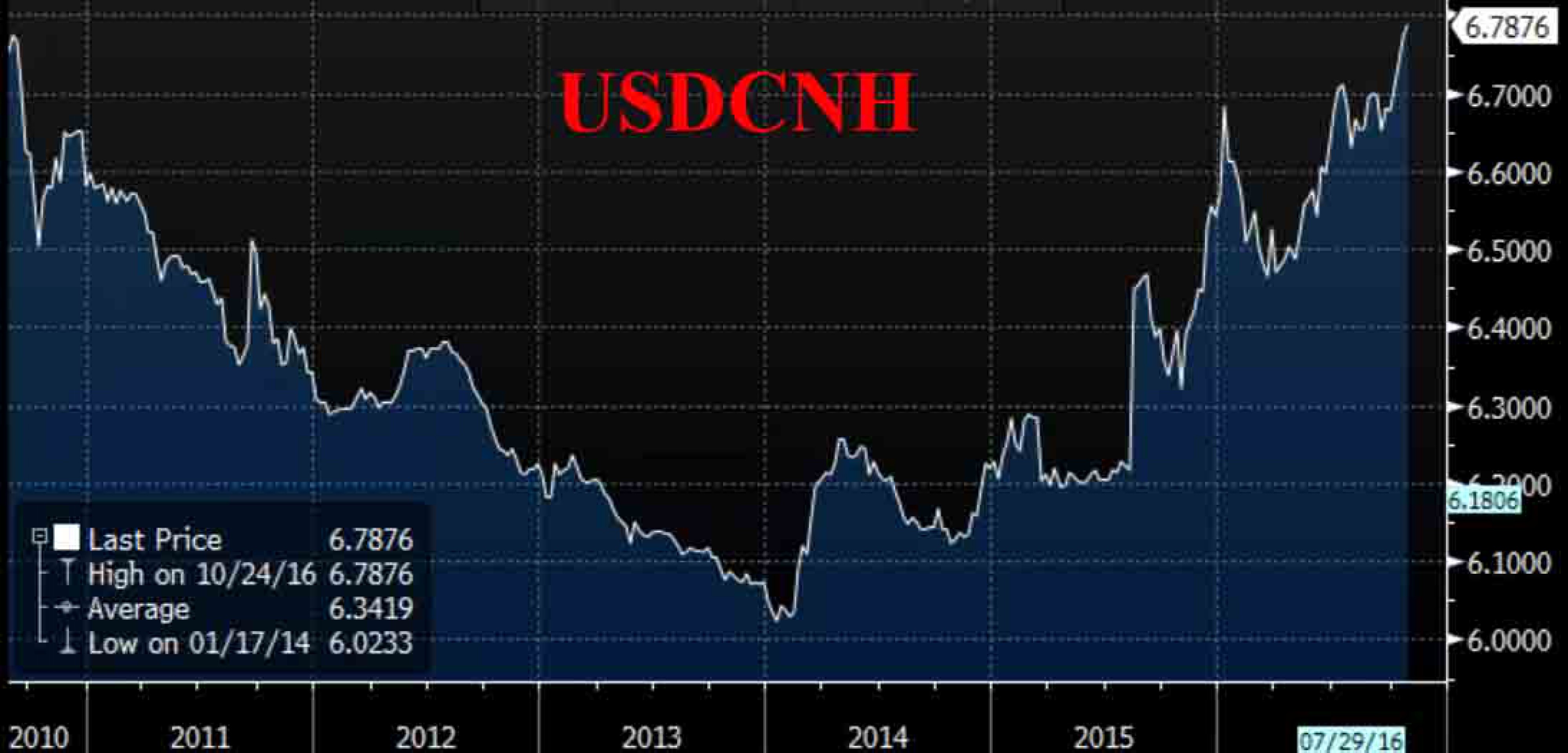 Народный банк Китая поддерживал курс своей валюты до 1 октября - момента включения юаня в корзину резервных валют SDR, но уже на следующий день началось свободное падение. Все это происходит на фоне мощнейшего оттока капитала из страны. Согласно официальным данным в сентябре резервы китайского ЦБ упали почти на $20 млрд - минимума за 5 лет.